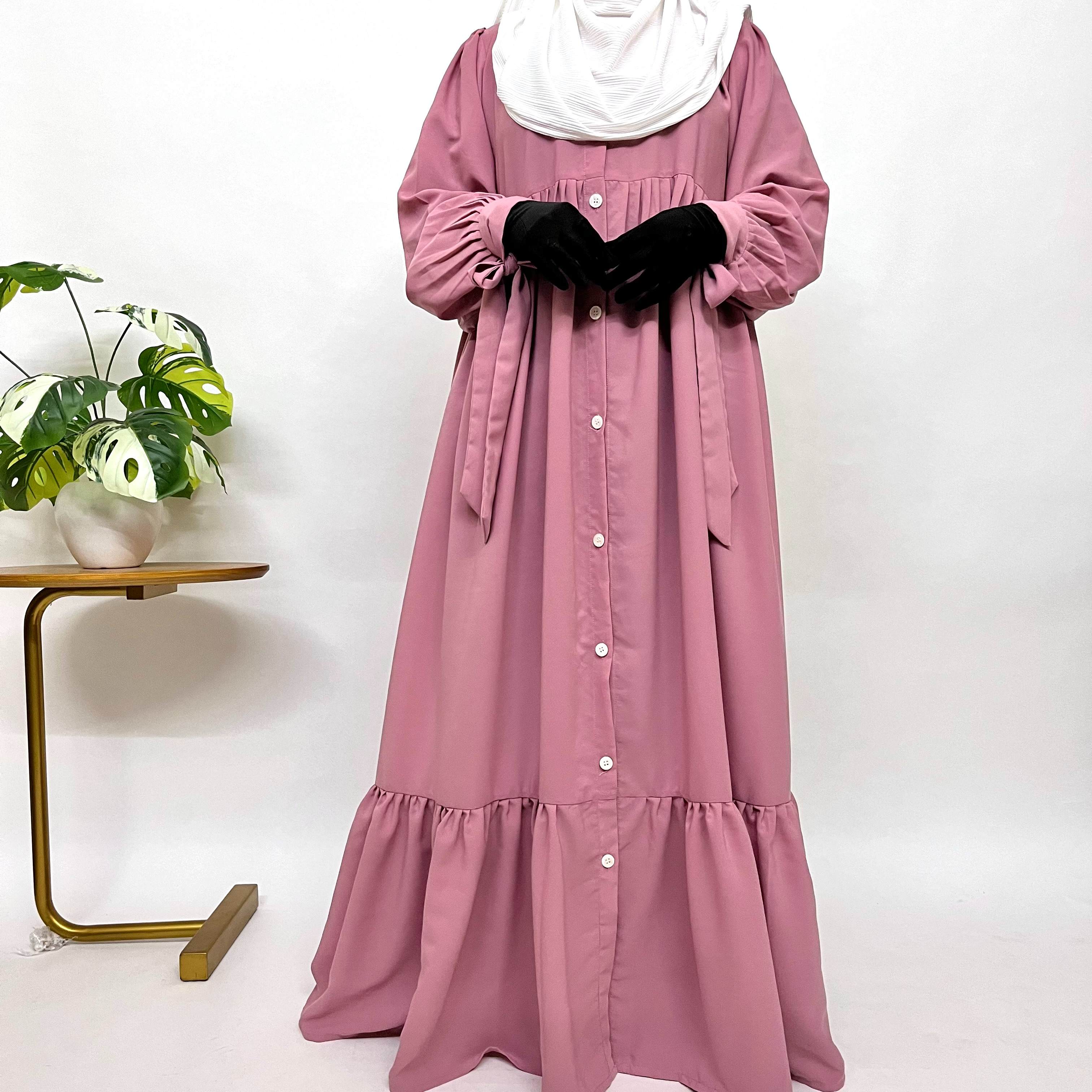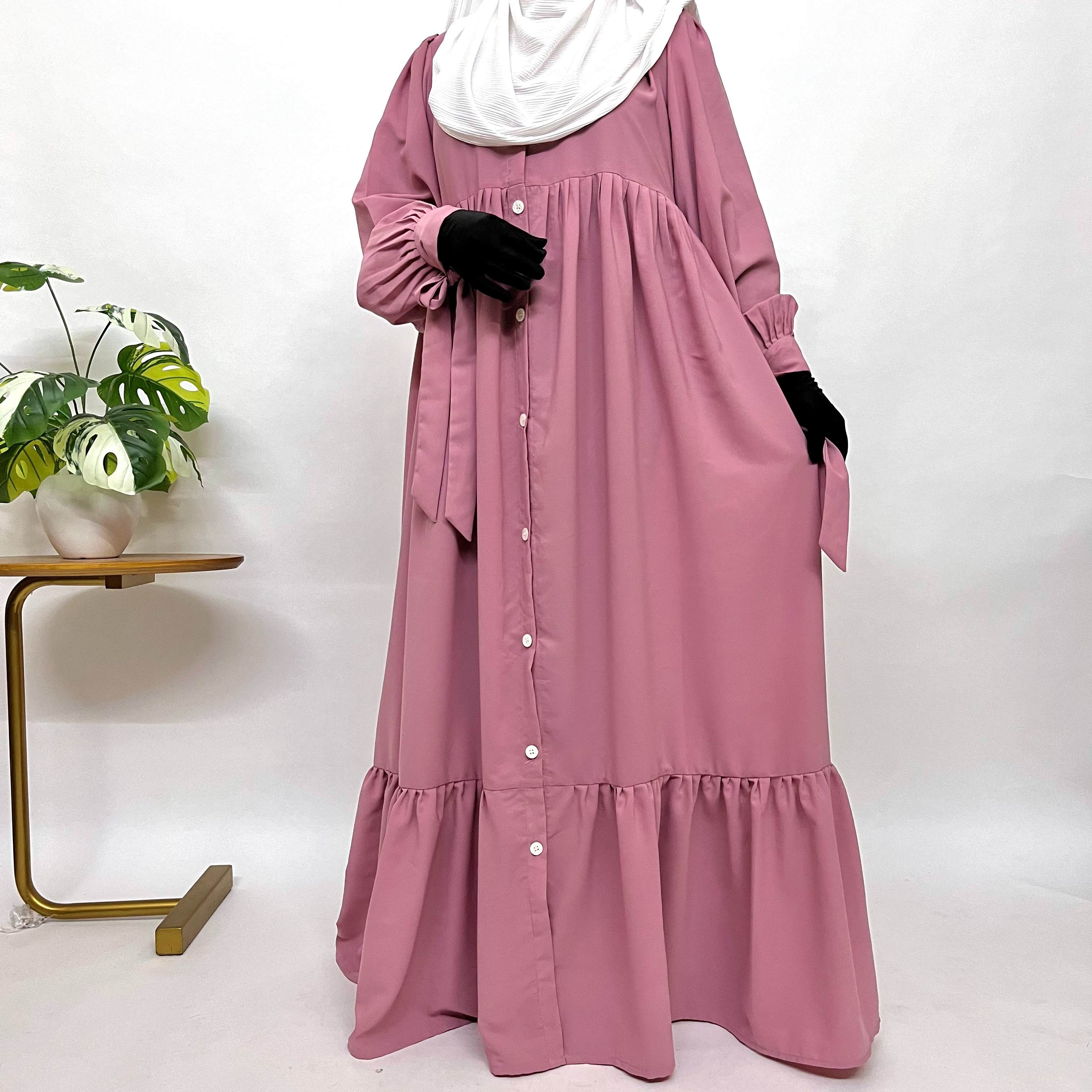 Amirah Frill Abaya features delicate frill accents and button detailing for a charming front-open design. Its ribbon sleeves add a graceful touch, making it both stylish and comfortable to wear. This abaya is perfect for those who want an elegant yet easy