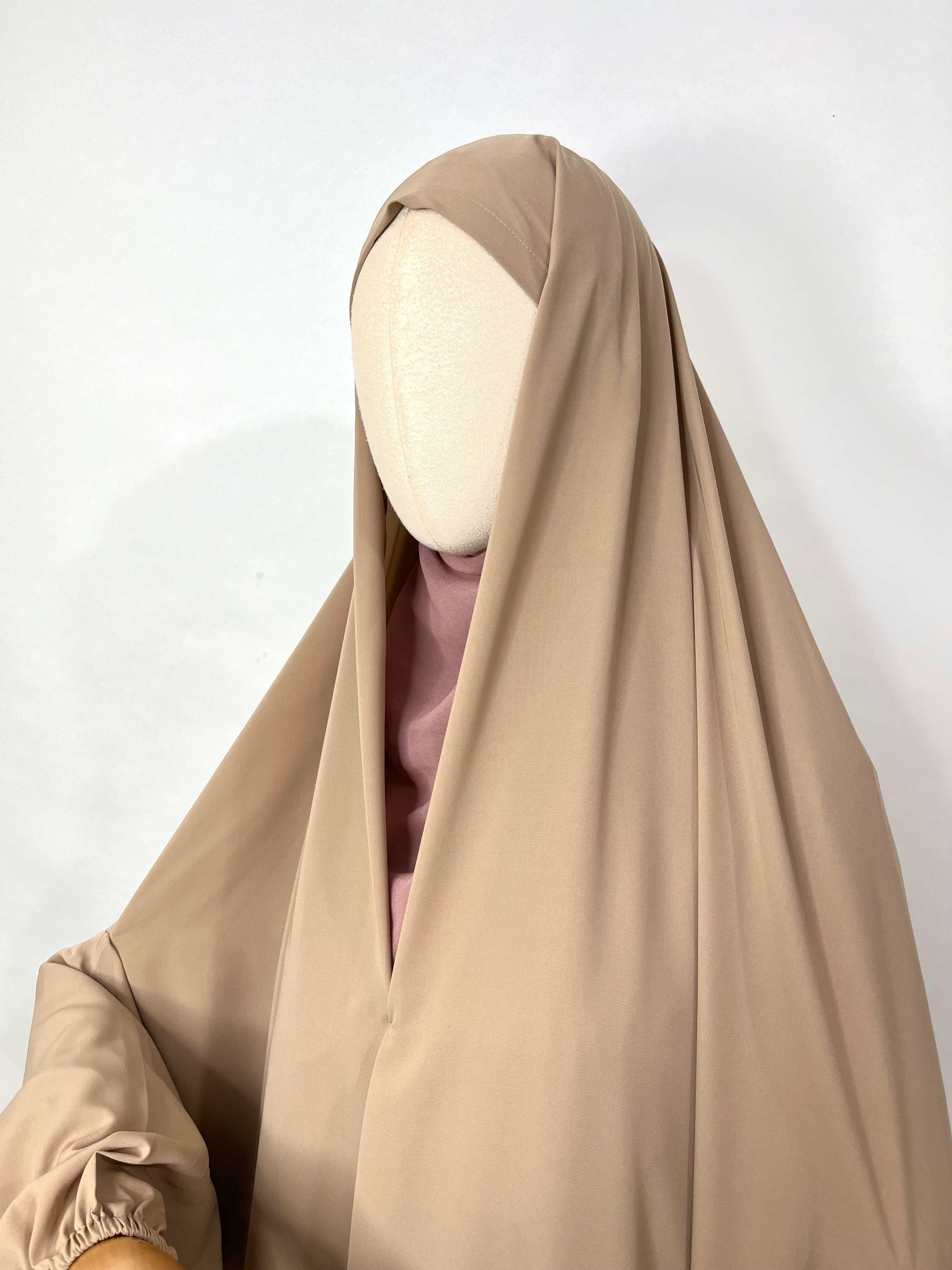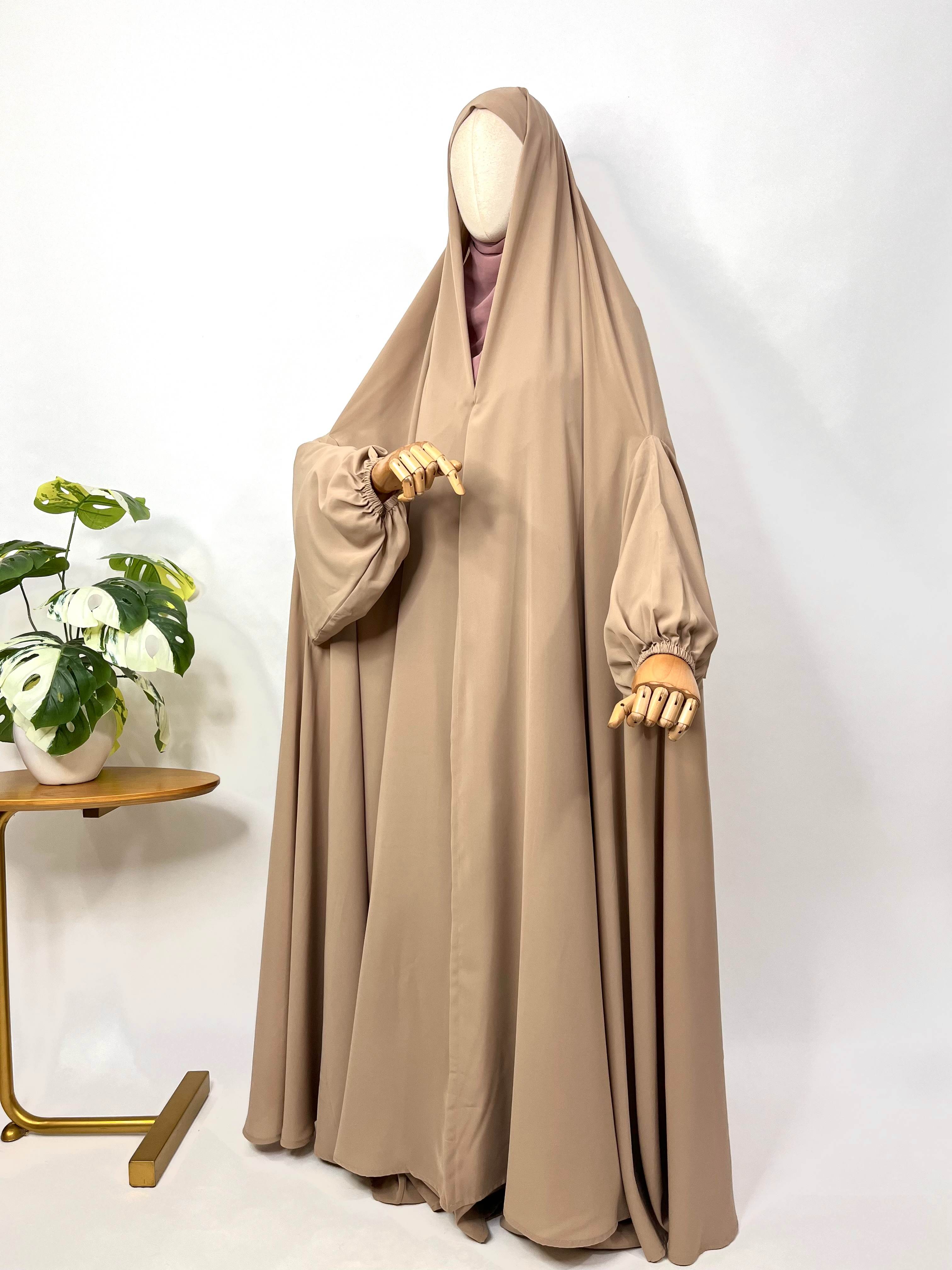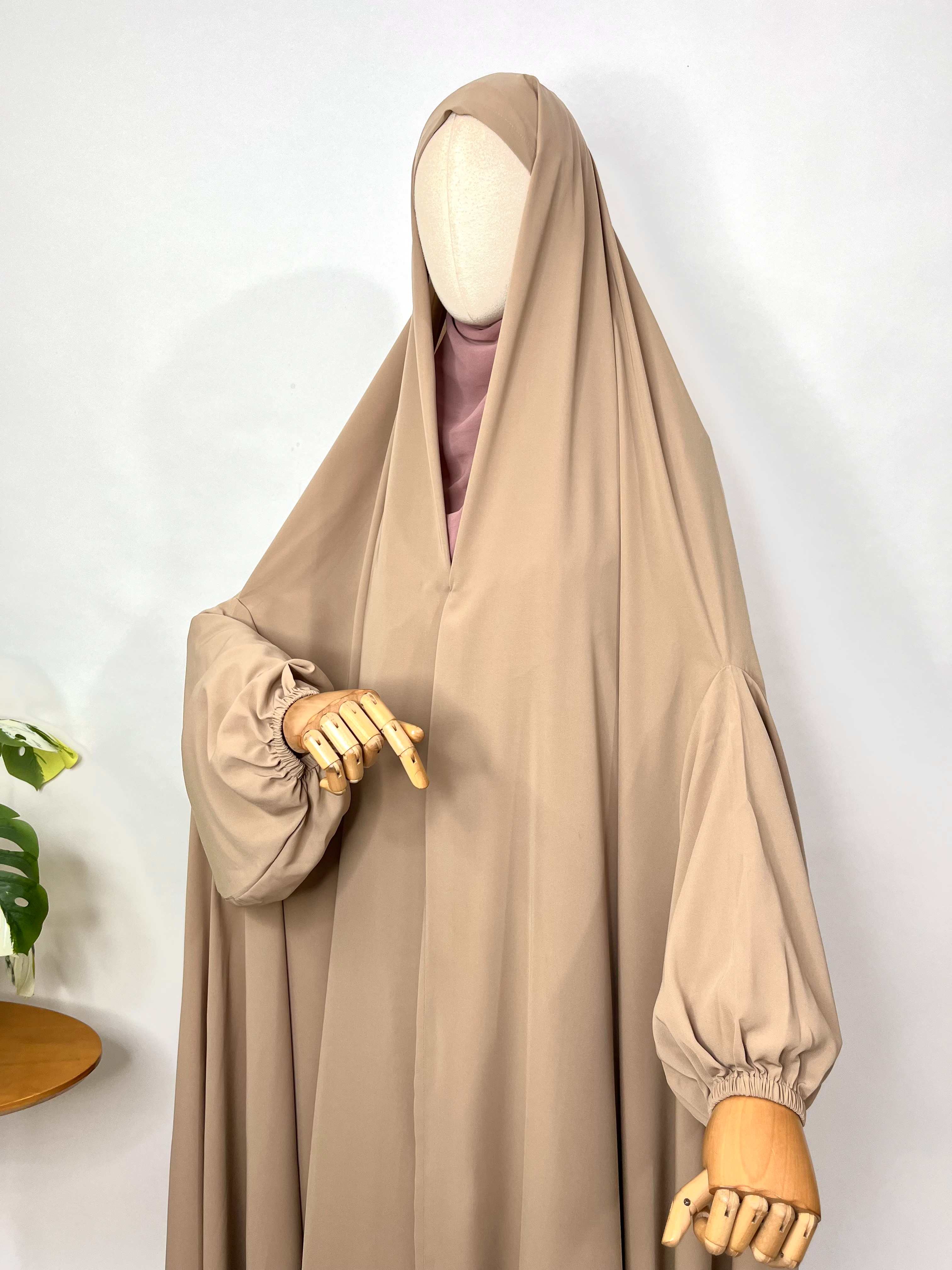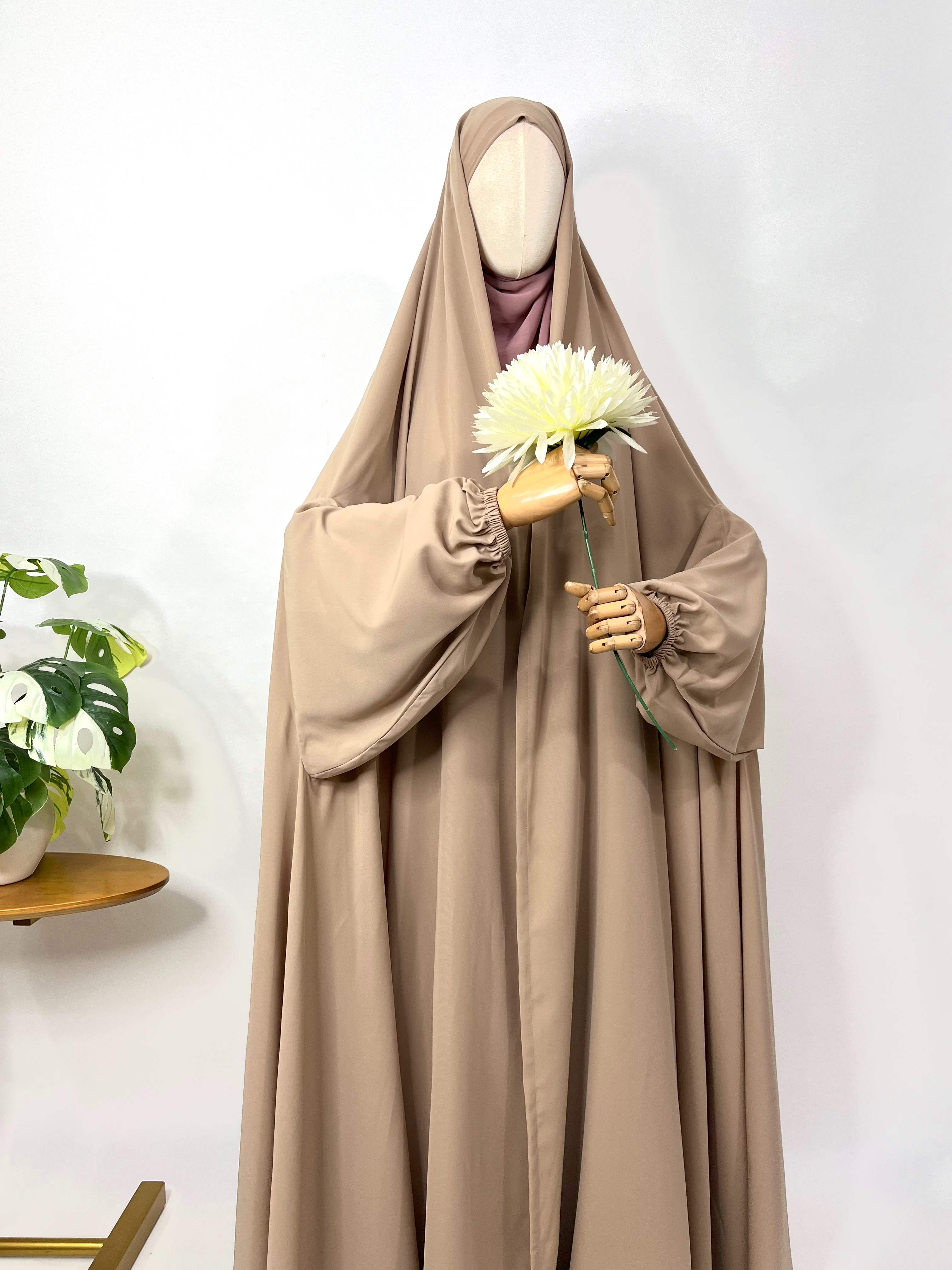 Effortlessly elevate your style with our Beige Irani Chadar. Made with nida matt fabric, it provides full coverage while being easy to wear. With sleeves and a quick one-minute preparation time, you'll be ready to look your best in no time.
