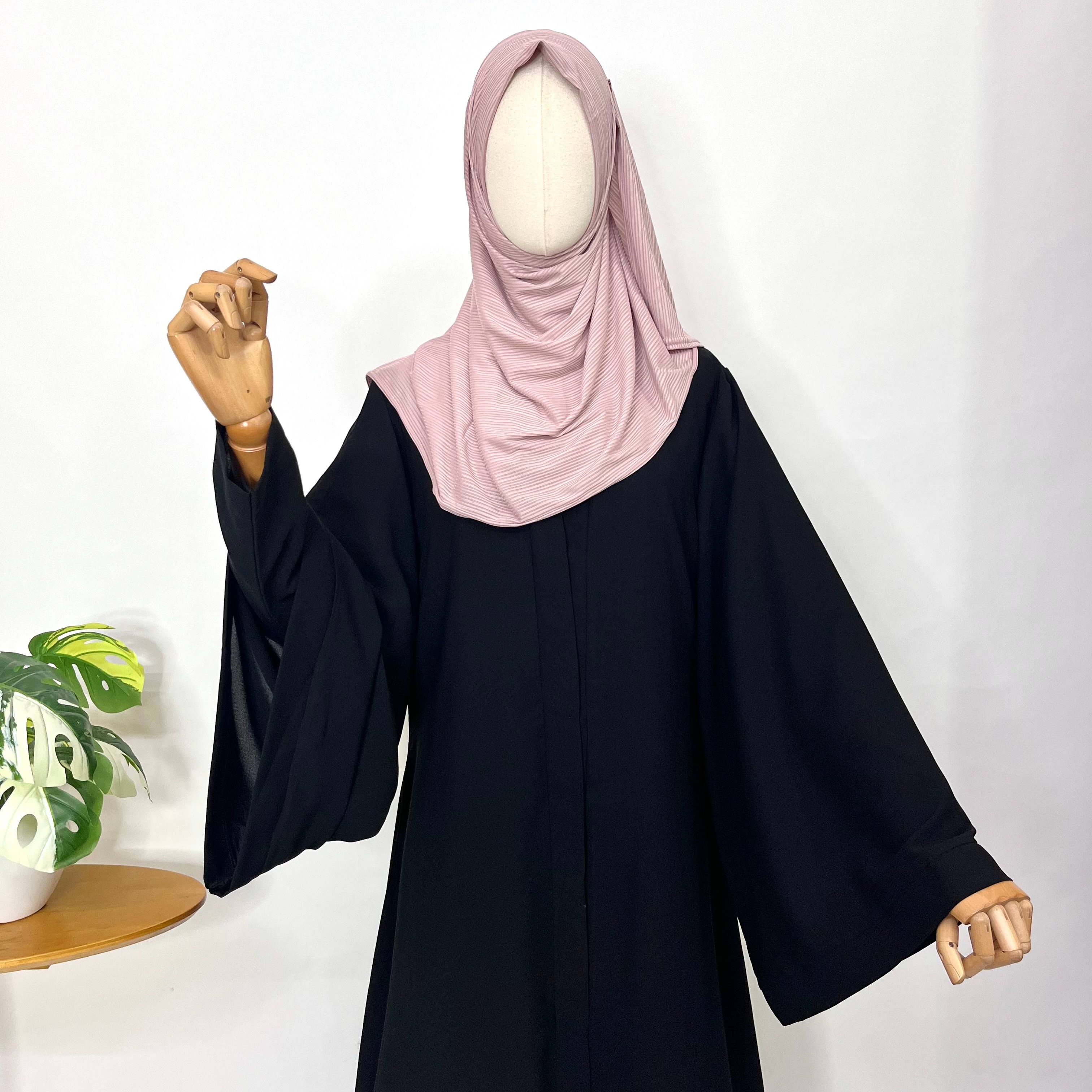 The Bisma Abaya features a graceful front-open design with an elegant A-line silhouette, offering both comfort and style. Its distinctive double sleeves and bell upper sleeves add a unique touch, ensuring ease of movement while maintaining modesty. Perfect for those seeking a blend of tradition and modernity in their wardrobe.