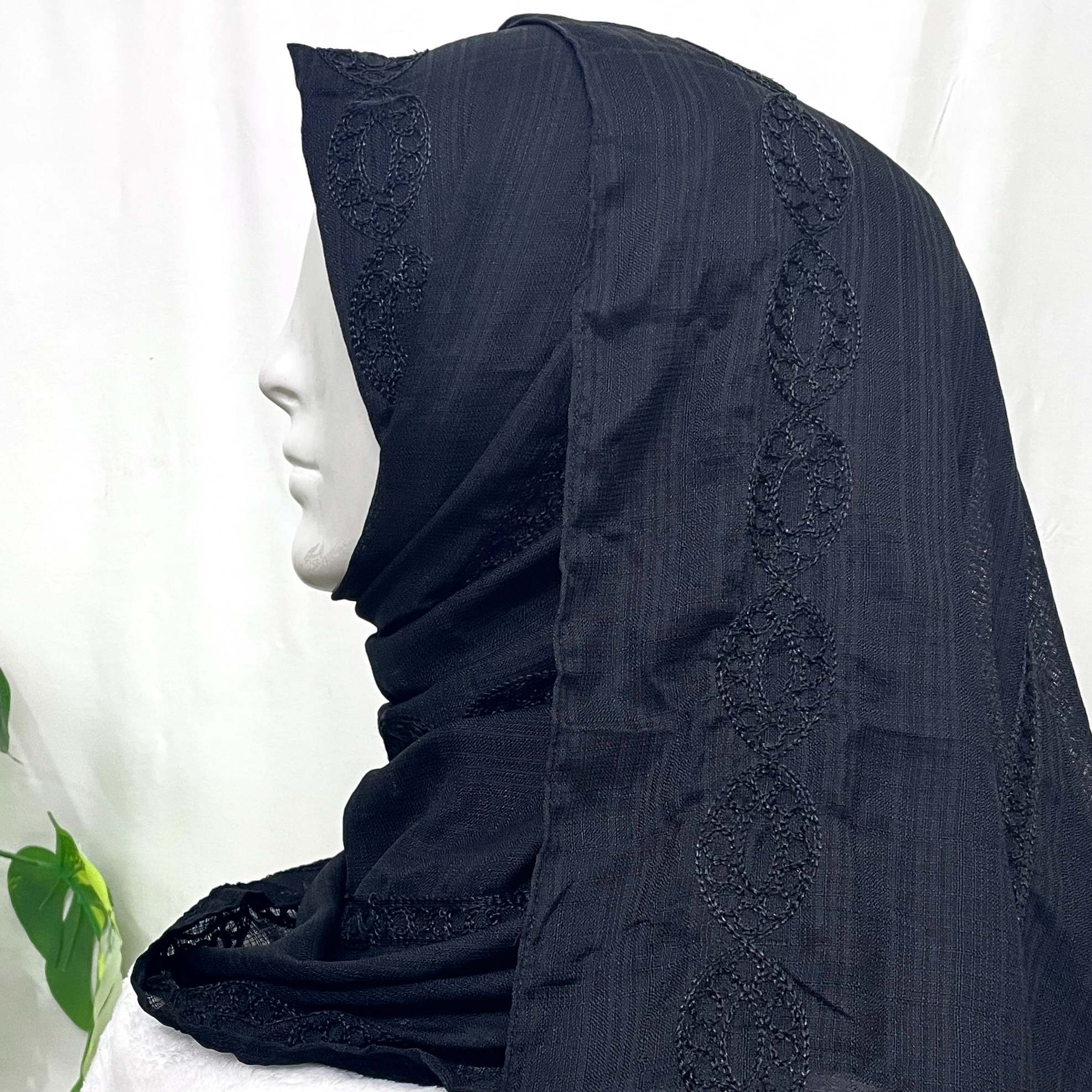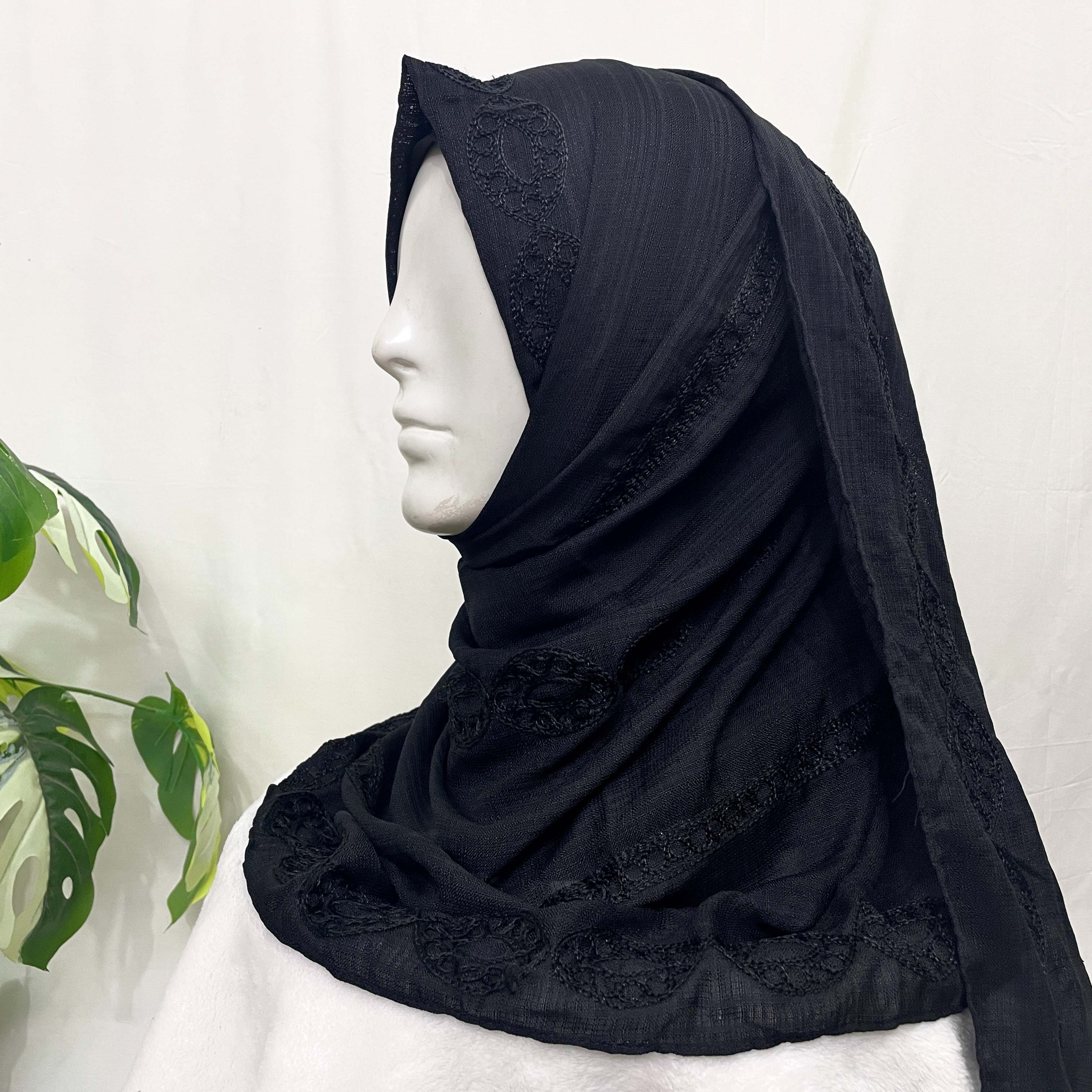 Stay comfortable and stylish with our black hijab with embroidery viscose cotton hijabs. Made from a soft and lightweight fabric, these hijabs are perfect for daily wear. The non-slippery design allows for easy styling without the need for pins. Add a touch of effortless elegance to your outfit with our cotton hijab.
