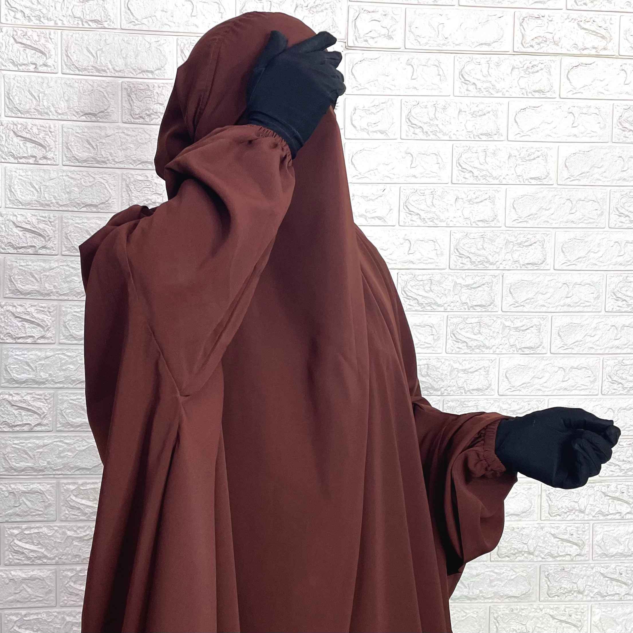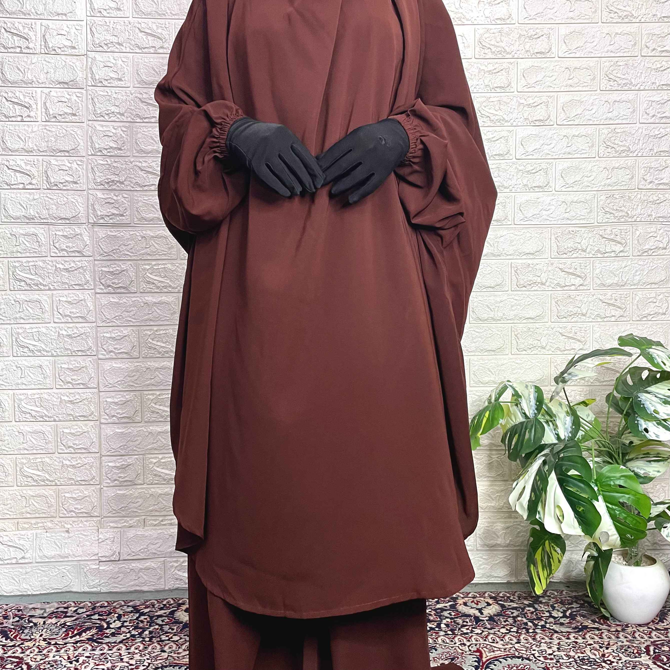 Stay stylish and modest with our Brown Two Pc Jilbab. This two piece set includes a broad pant and a jilbab, providing full coverage while keeping you comfortable with elastic sleeves. Perfect for any occasion, this jilbab allows you to stay true to your faith and fashion.