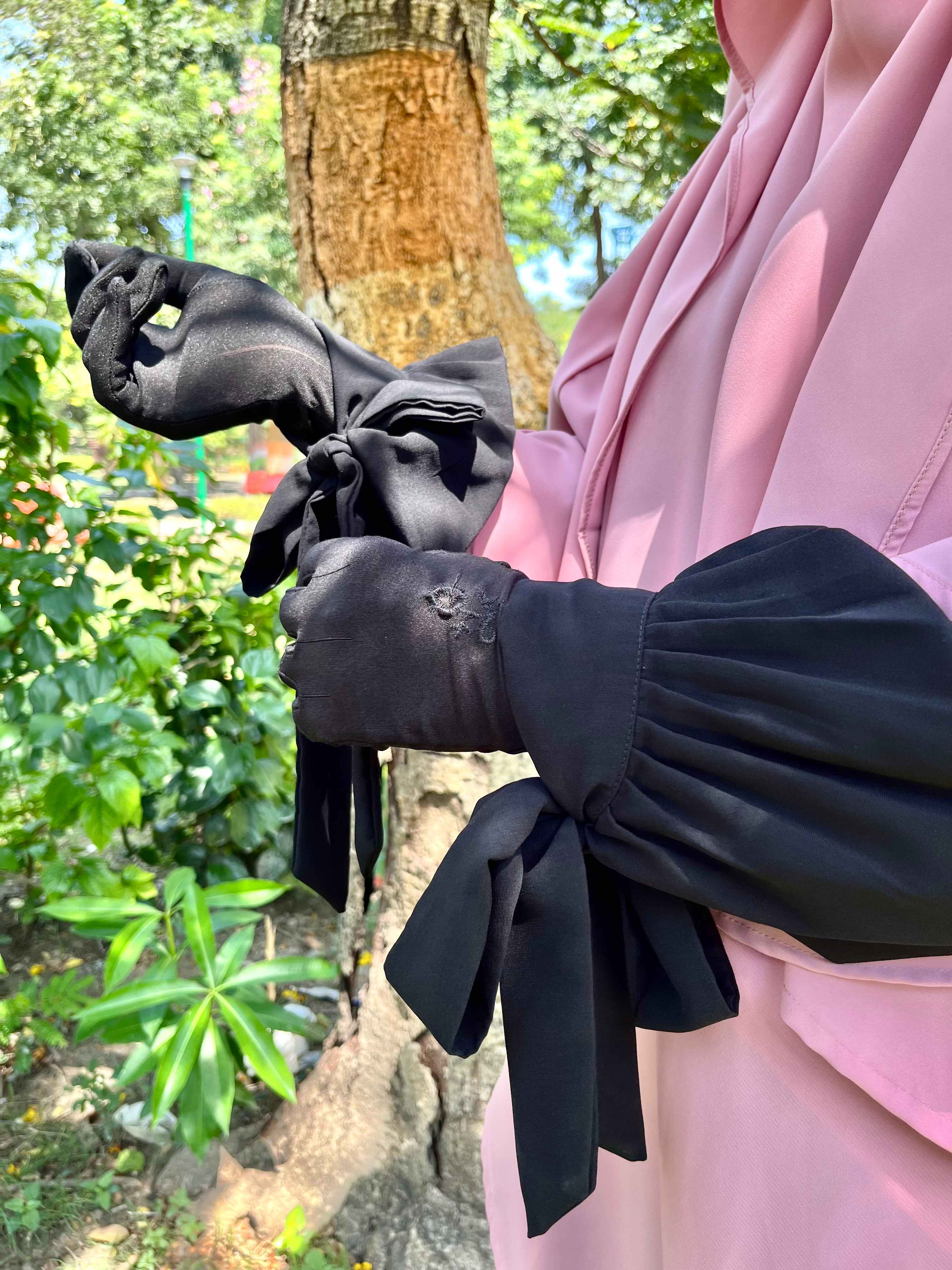 Black Aline Abaya Khimar Set combines modesty and style with its flowy design and ribbon sleeves. It includes a pastel pink flap diamond khimar that matches perfectly, making it comfortable for daily wear or special events while helping you feel confident and graceful.