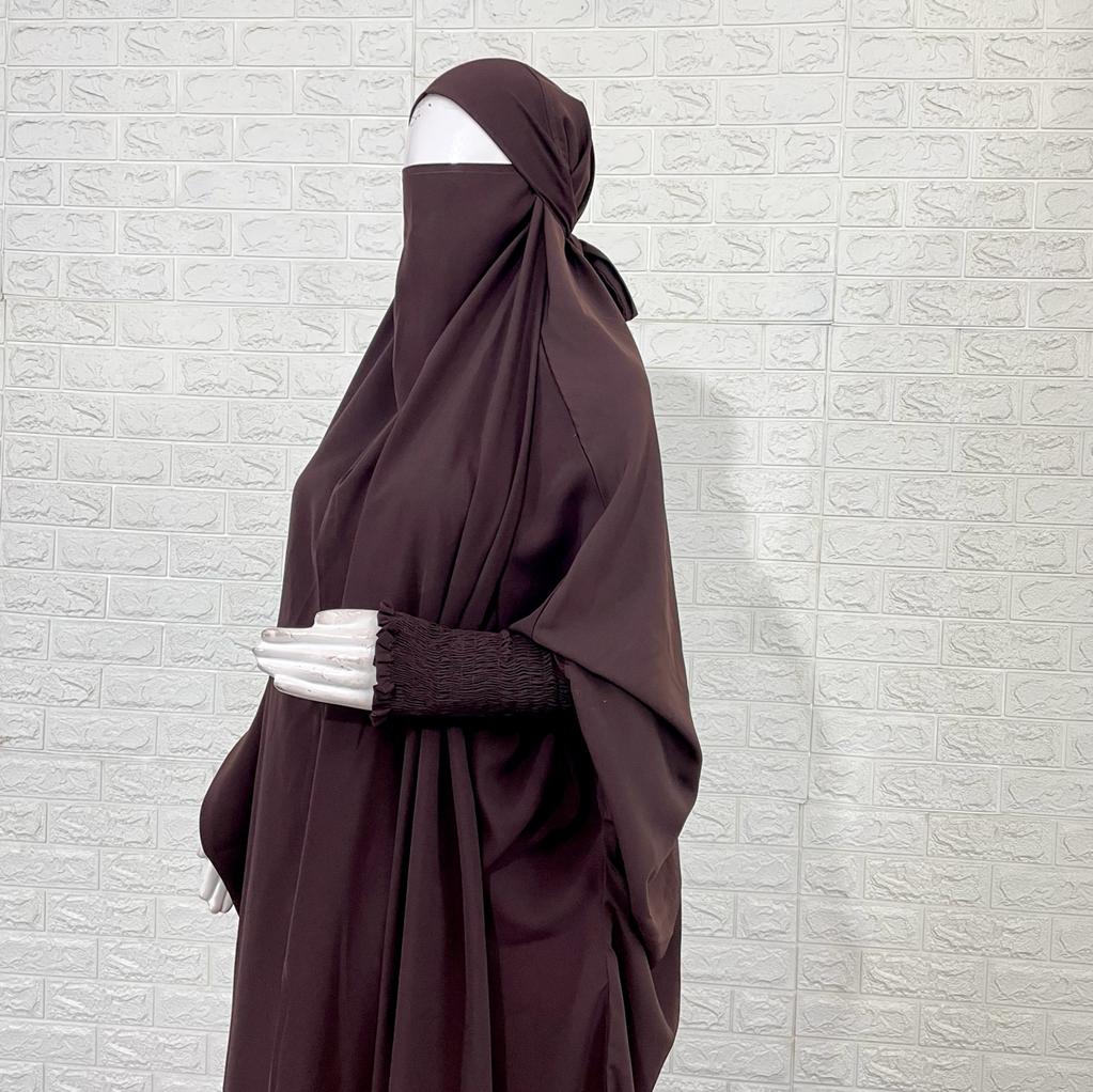 Stay comfortable and stylish with our Brown Smocking Jilbab. This one piece jilbab comes with an attached niqab for convenience and easy wear. The free size ensures a perfect fit for all. Perfect for everyday wear, this jilbab offers both fashion and functionality.