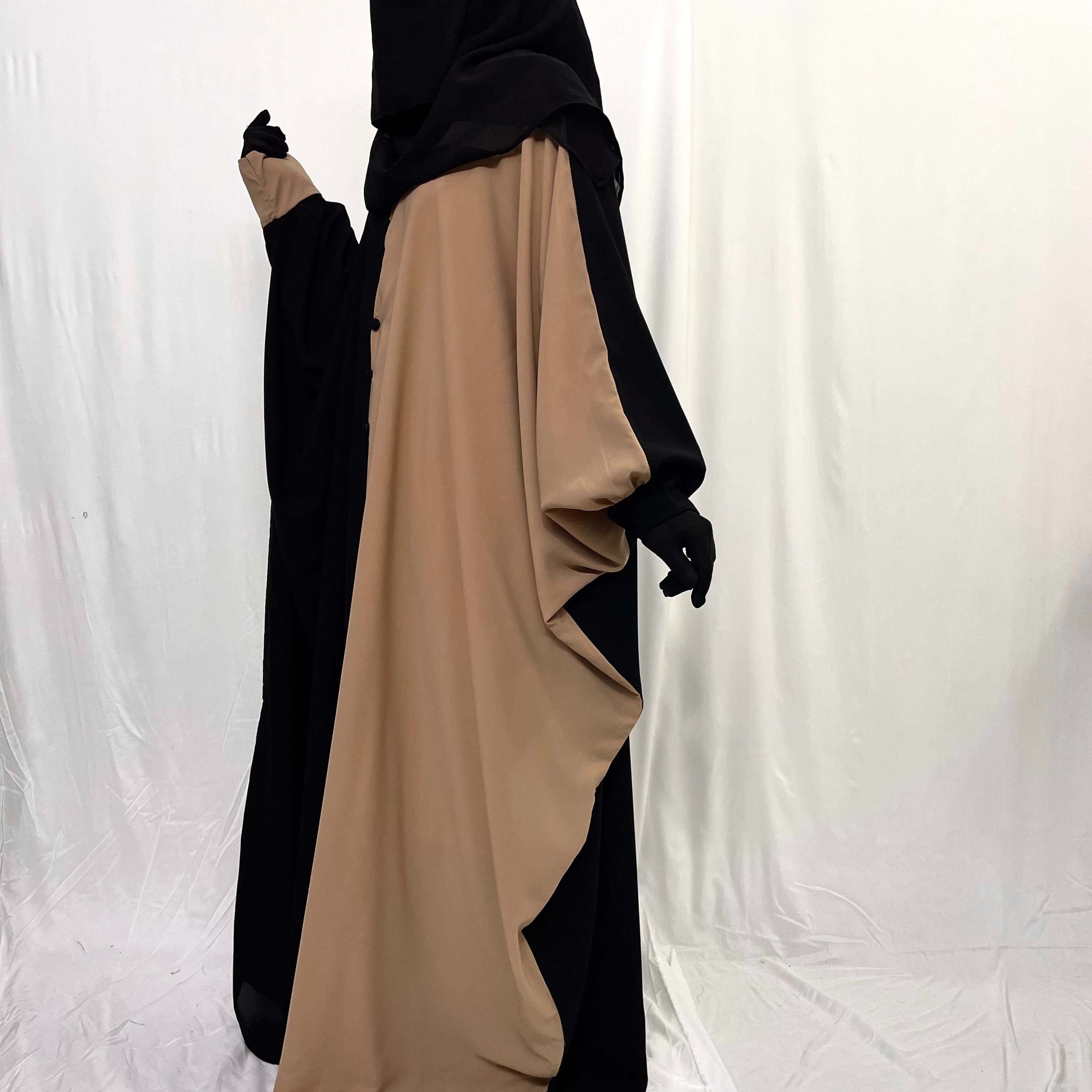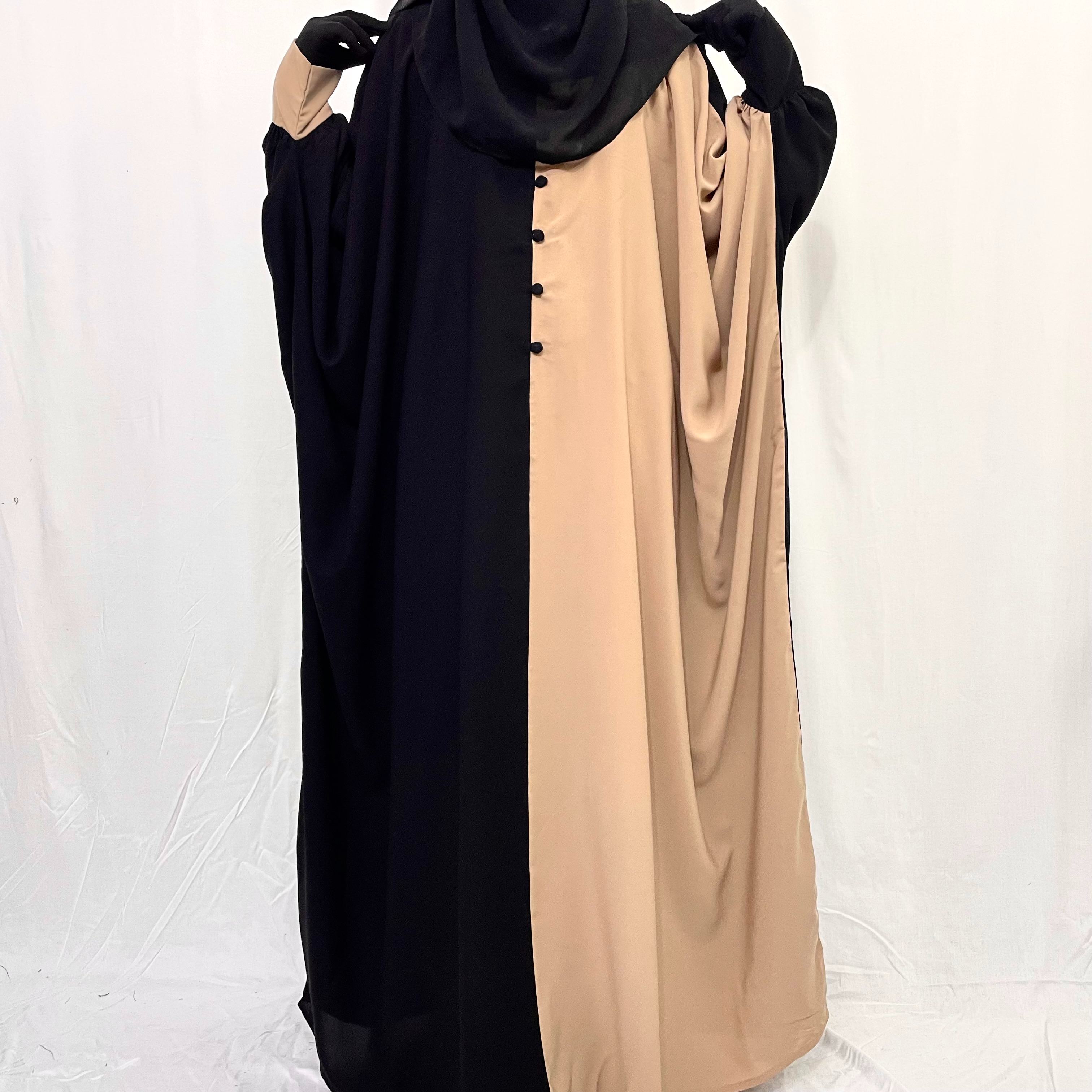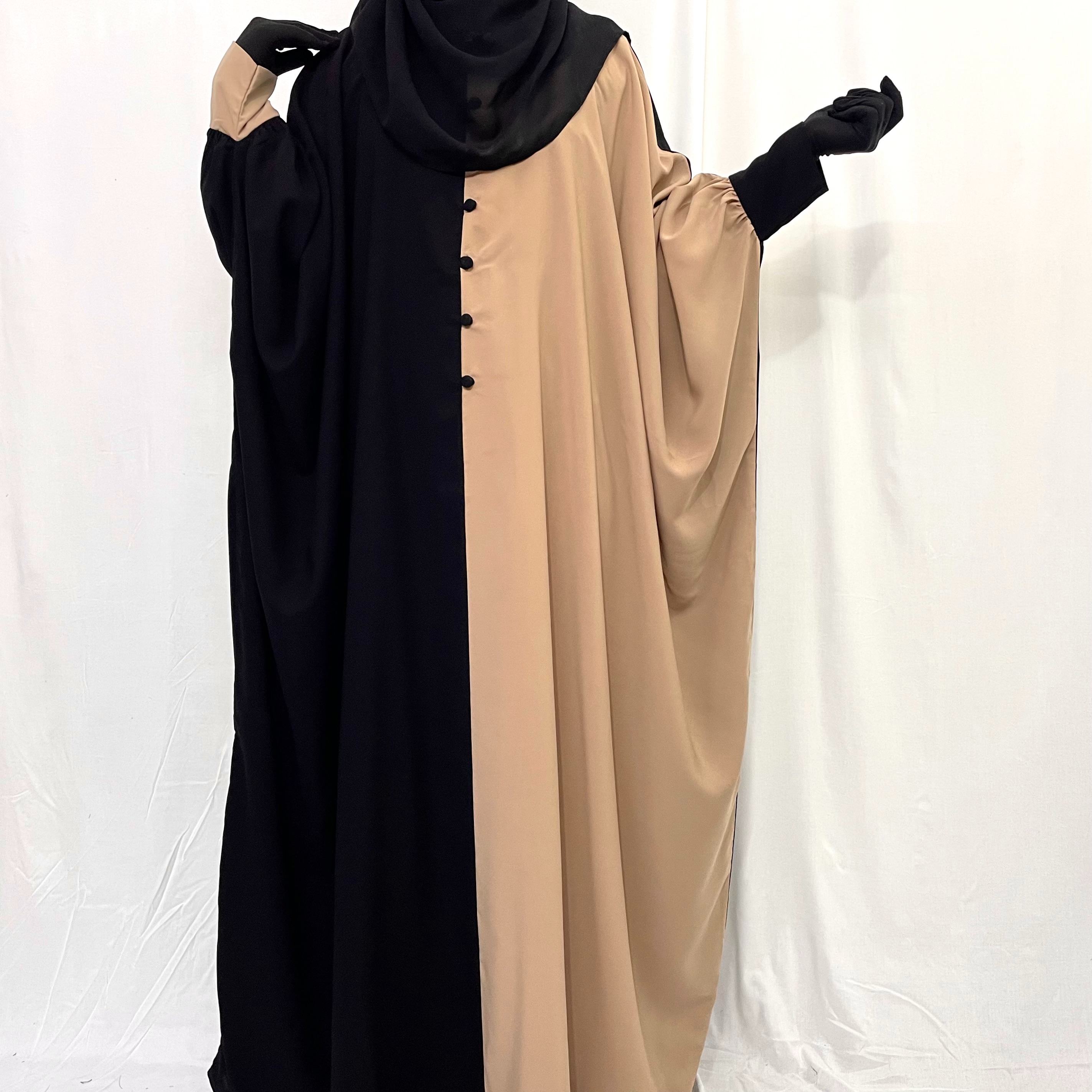 Embrace elegance with our Dual Shade Kaftan Abaya, thoughtfully designed for modern modest fashion. Features plain closed cuffs for a refined look, stylish contrast buttons down the front, and a sophisticated full black back. This versatile piece effortlessly transitions from casual outings to special occasions while ensuring comfort and grace.