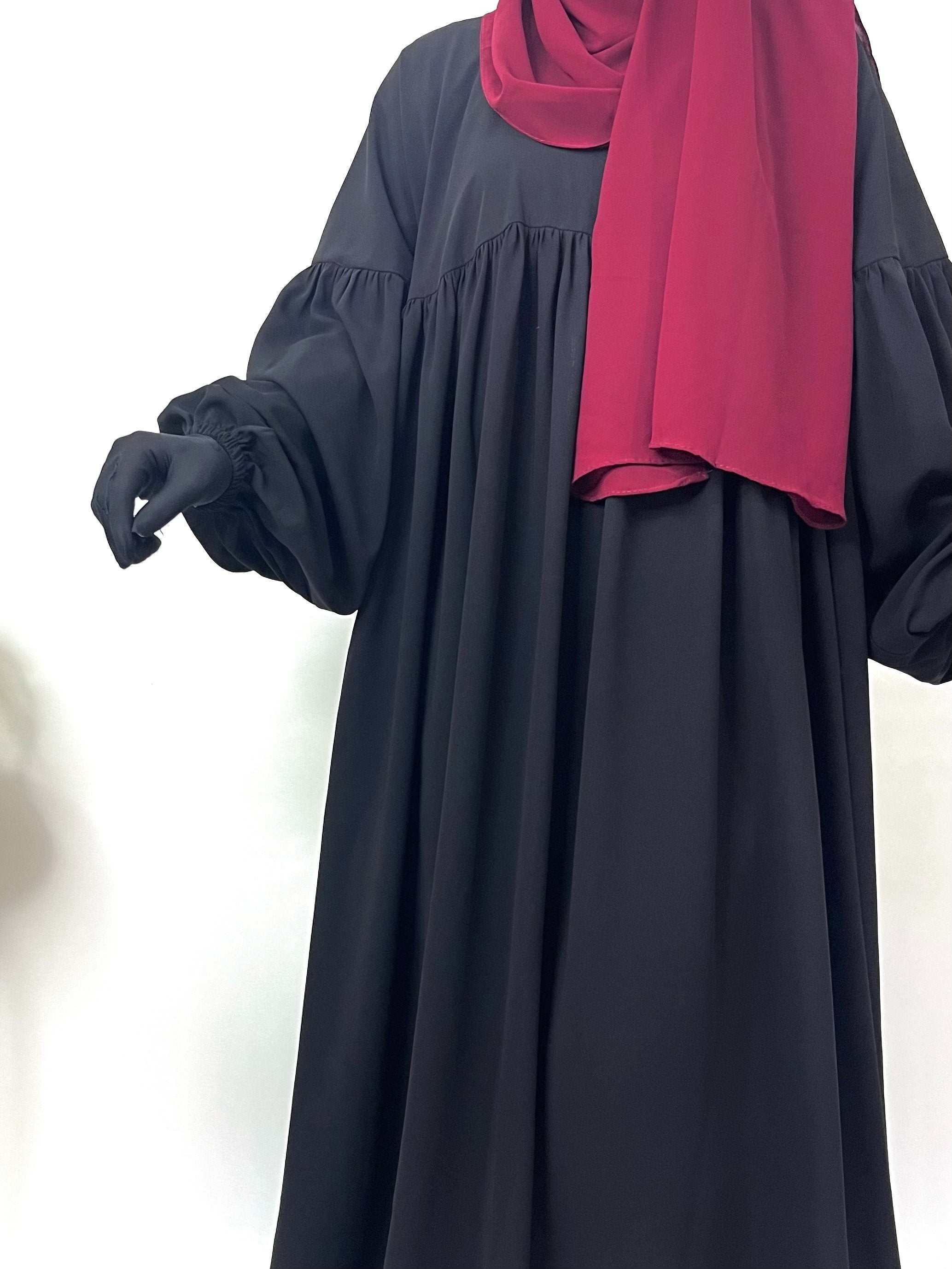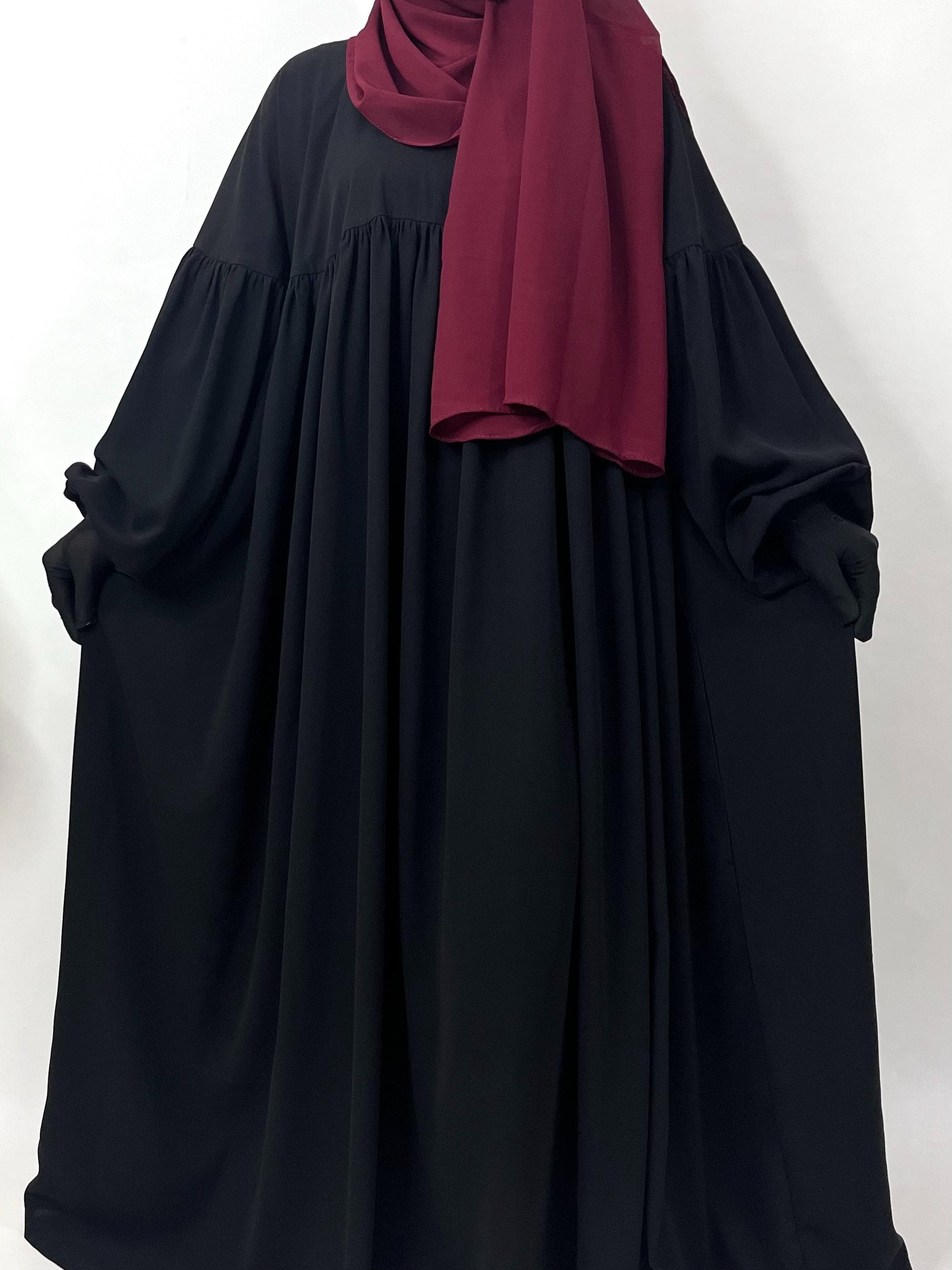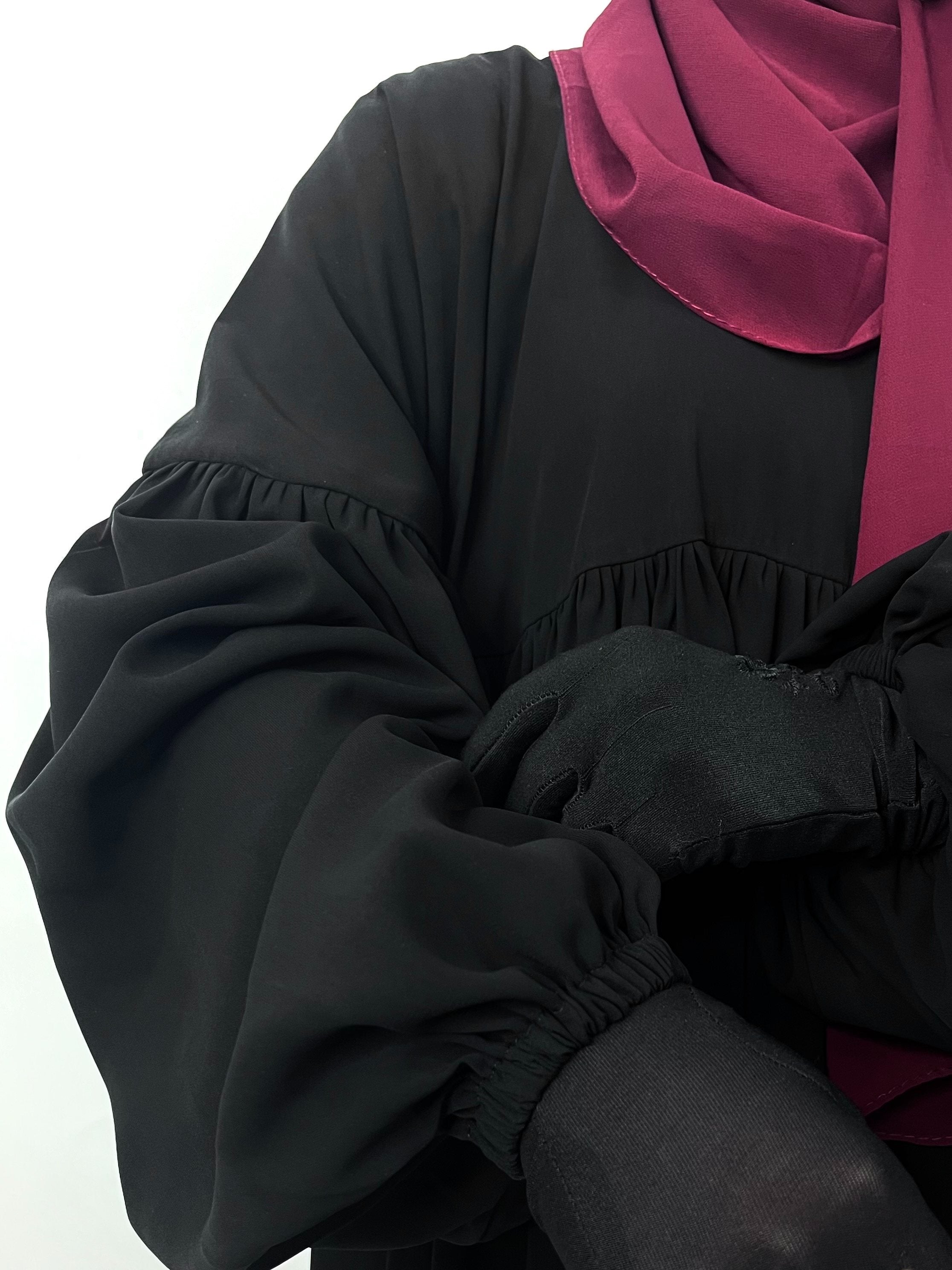 Enhance your wardrobe with our Black Frills Abaya, featuring delicate frill accents for a contemporary take on the traditional design. The pleated sleeves not only offer added comfort but also bring a stylish flair. Make a graceful statement with this beautiful garment.