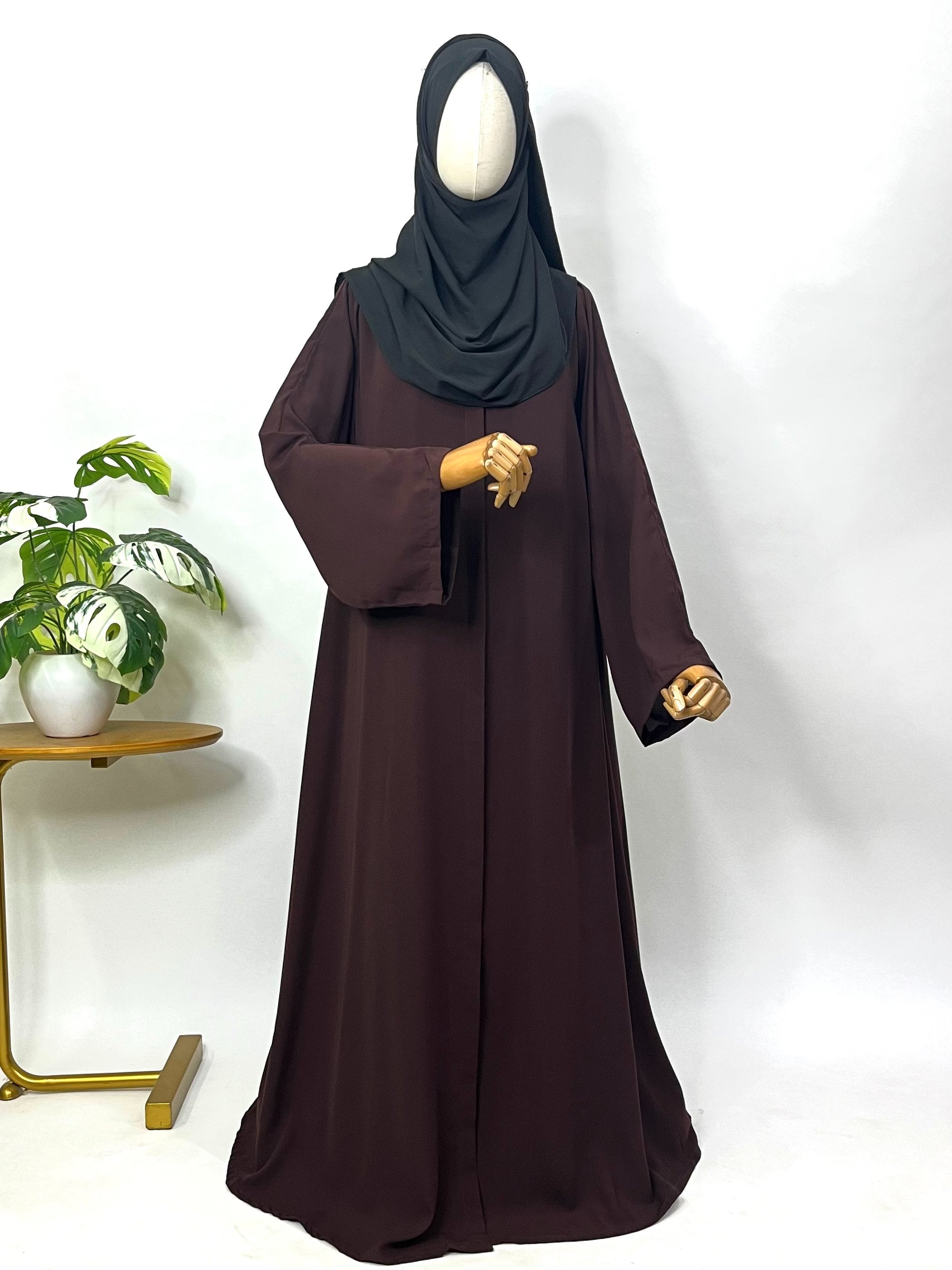 Embrace effortless elegance with this brown front open abaya, designed for modern comfort and versatility. The broad sleeves offer graceful movement while maintaining modest style, making it perfect for everyday wear or special occasions. Crafted for those who value both tradition and contemporary ease, this piece transitions seamlessly from casual outings to formal gatherings. The front opening design allows for quick layering and styling flexibility, while the relaxed silhouette flatters all body types. A wardrobe essential that celebrates your personal style with understated sophistication.