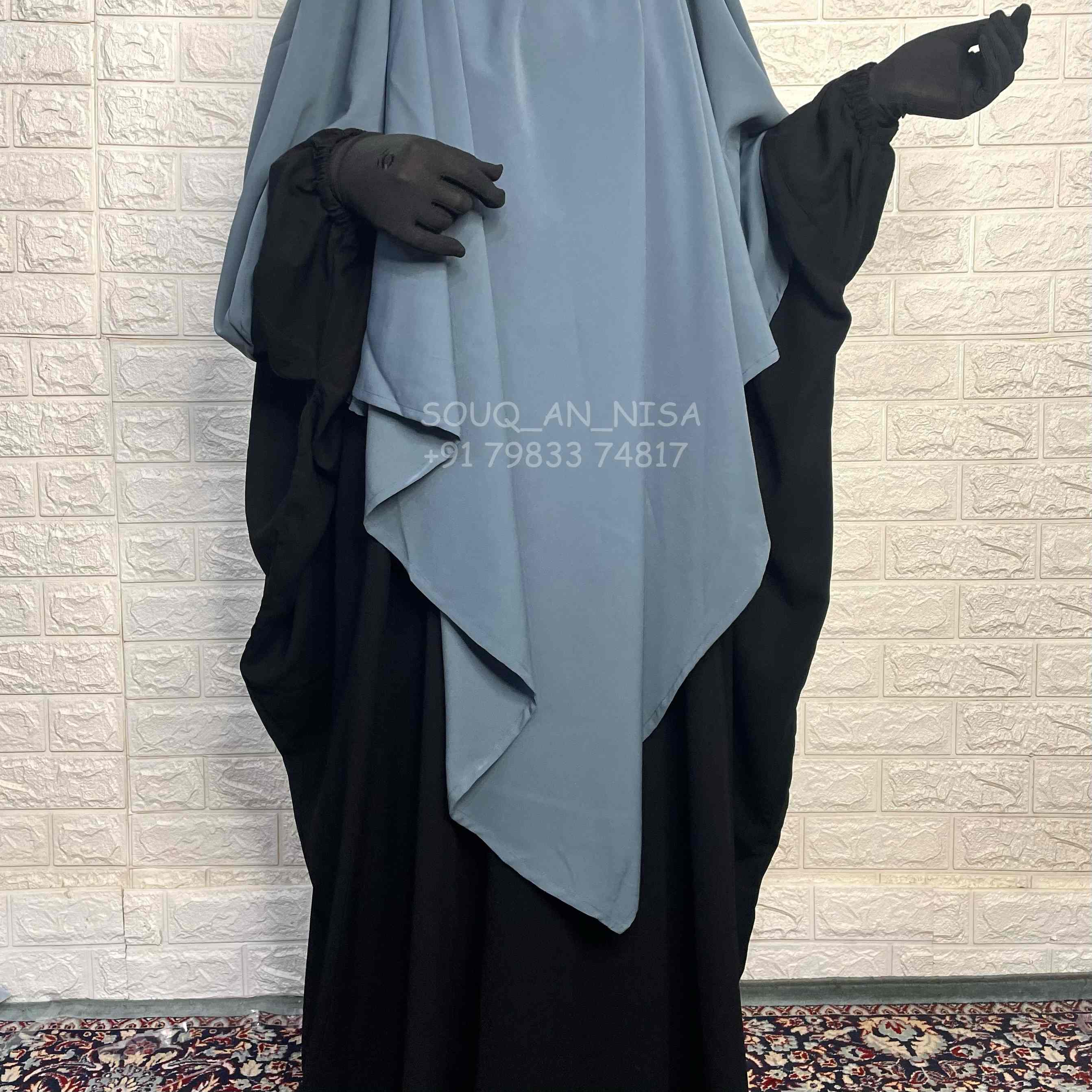 Kaftan abaya with one layer diamond khimar is free size abaya that is perfect for full coverage. When paired with the matching khimar it gives a whole different look , soothing to the eyes it’s a must have for this season.
