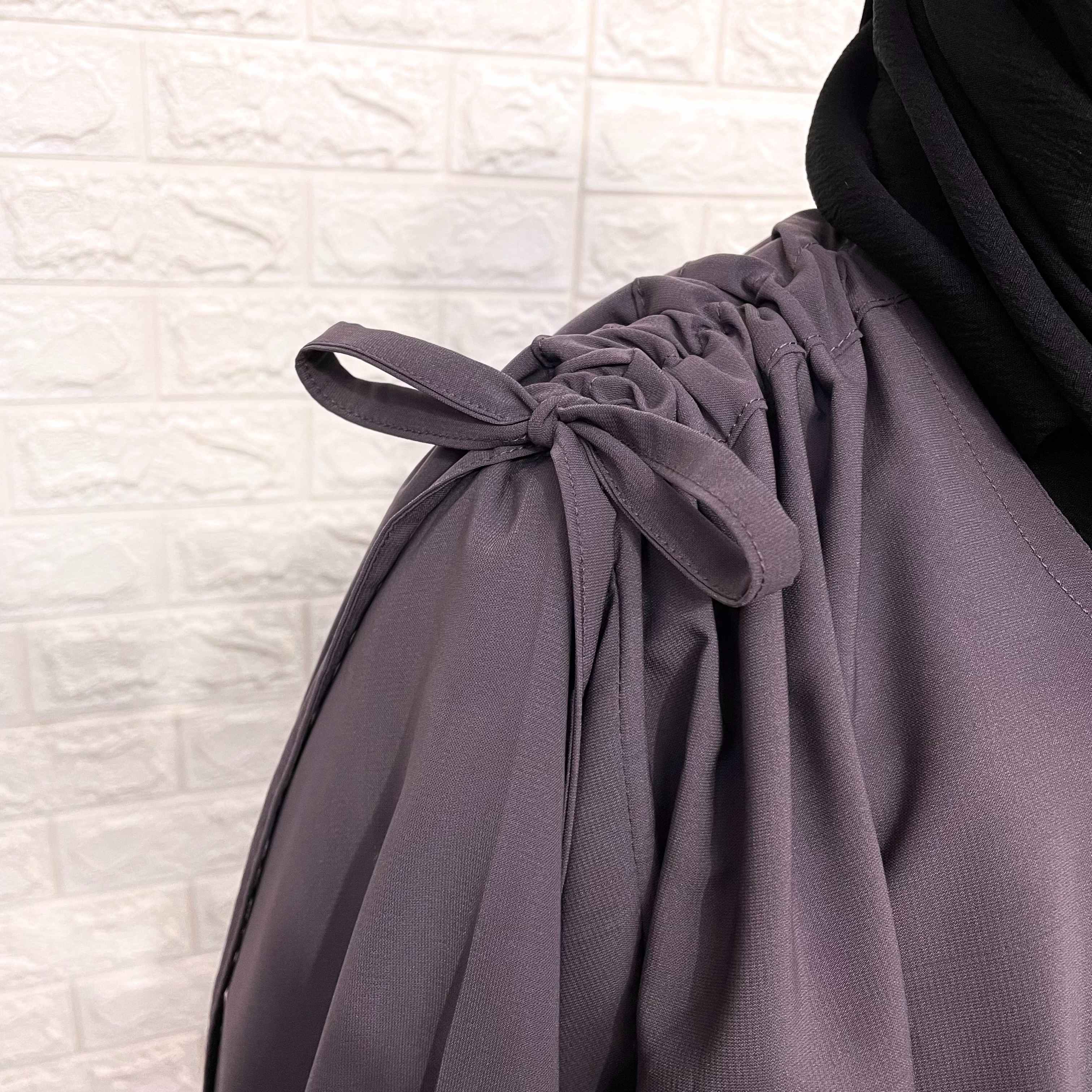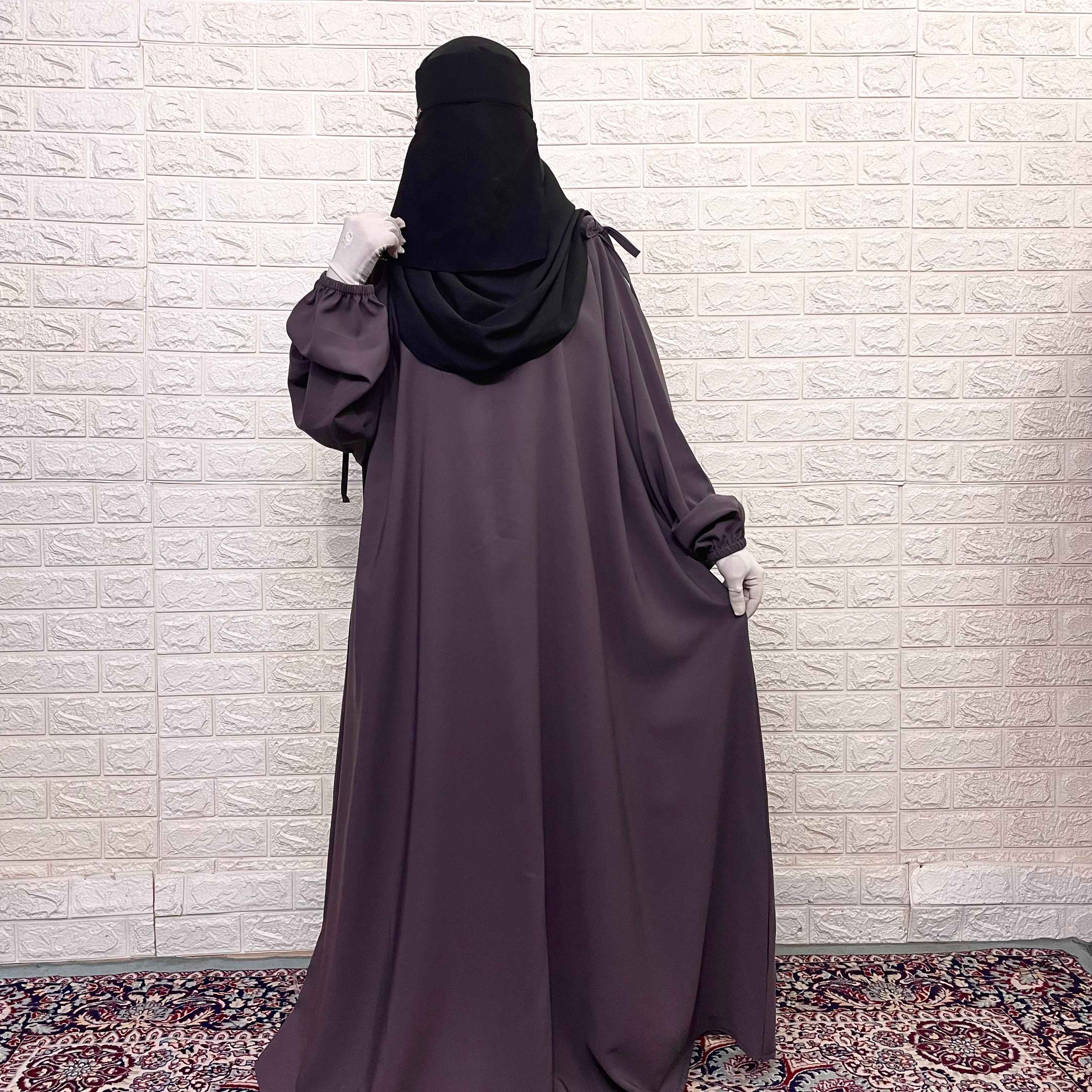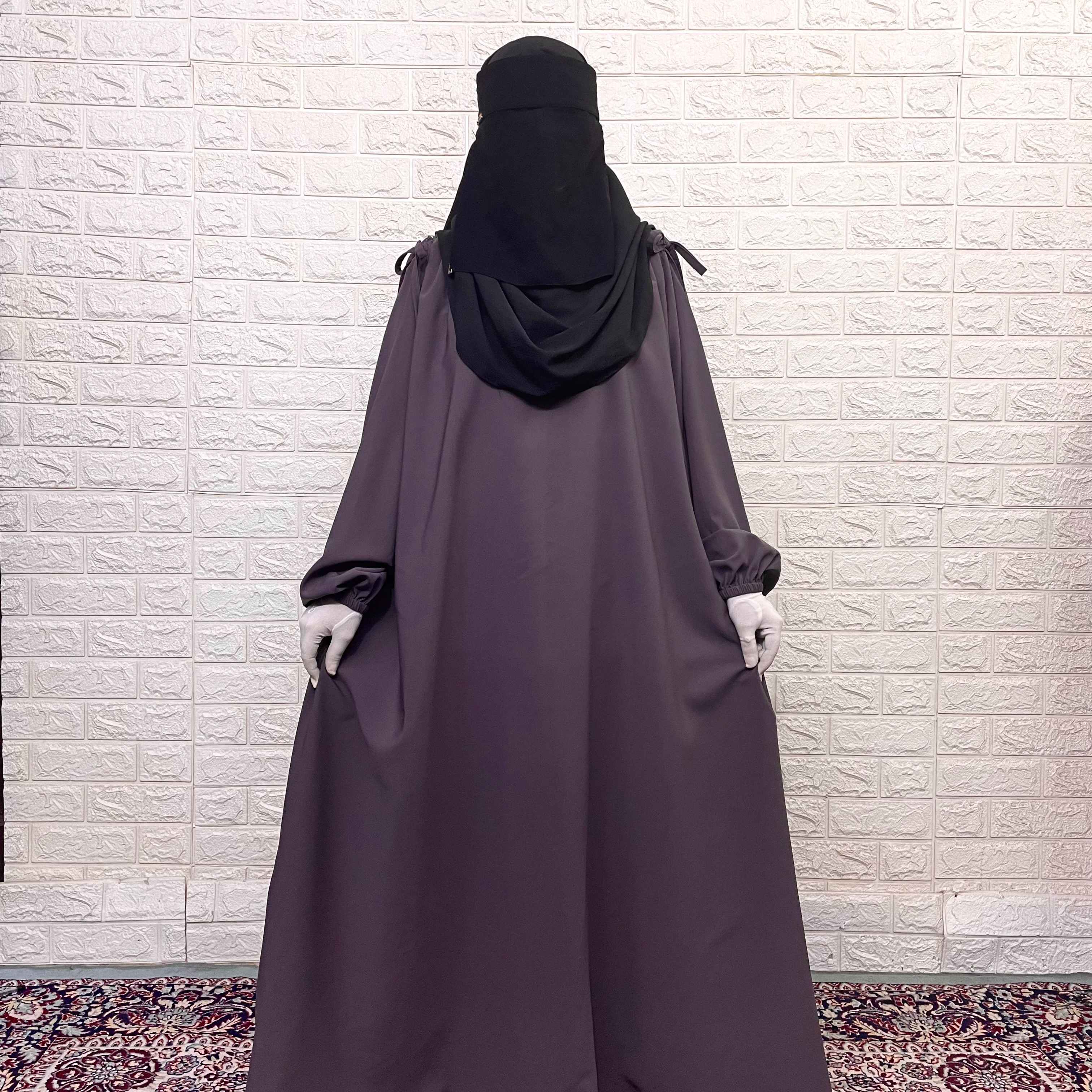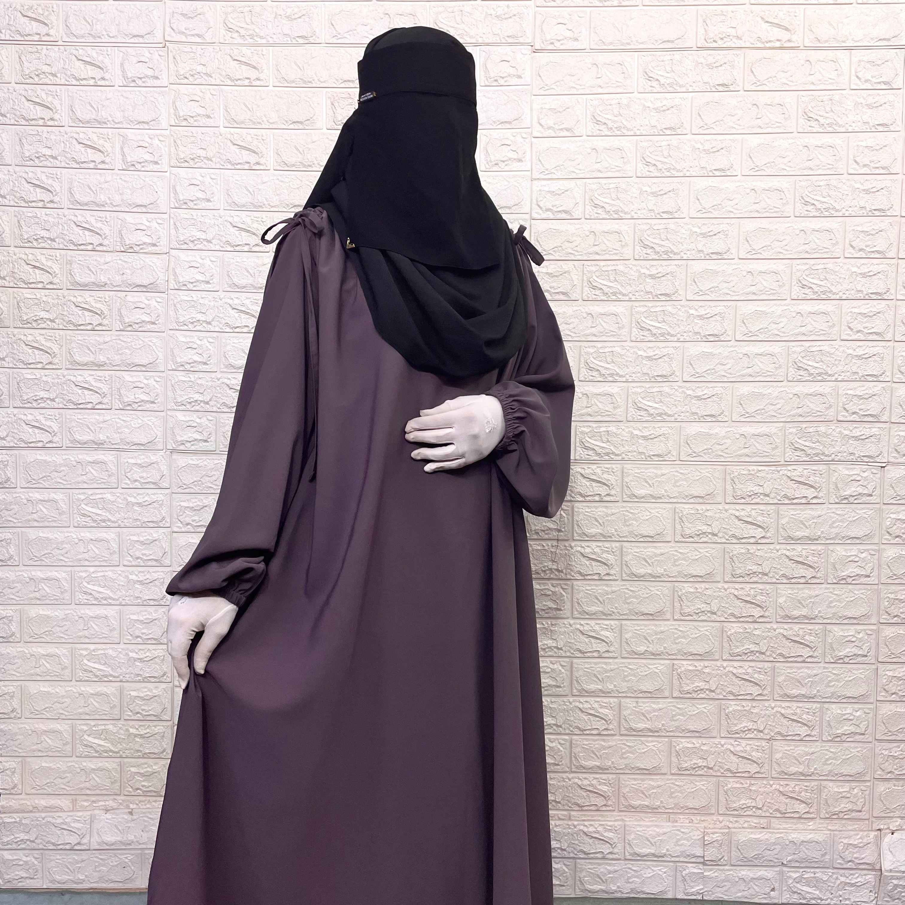 Lavender IQRA String Abaya offers elegant modest coverage with flary, elastic sleeves and tie strings on the shoulders for size adjustment. Say goodbye to shape reflections from any angle. Expertly designed for a perfect fit and ultimate comfort, it's the perfect addition to any modest wardrobe.