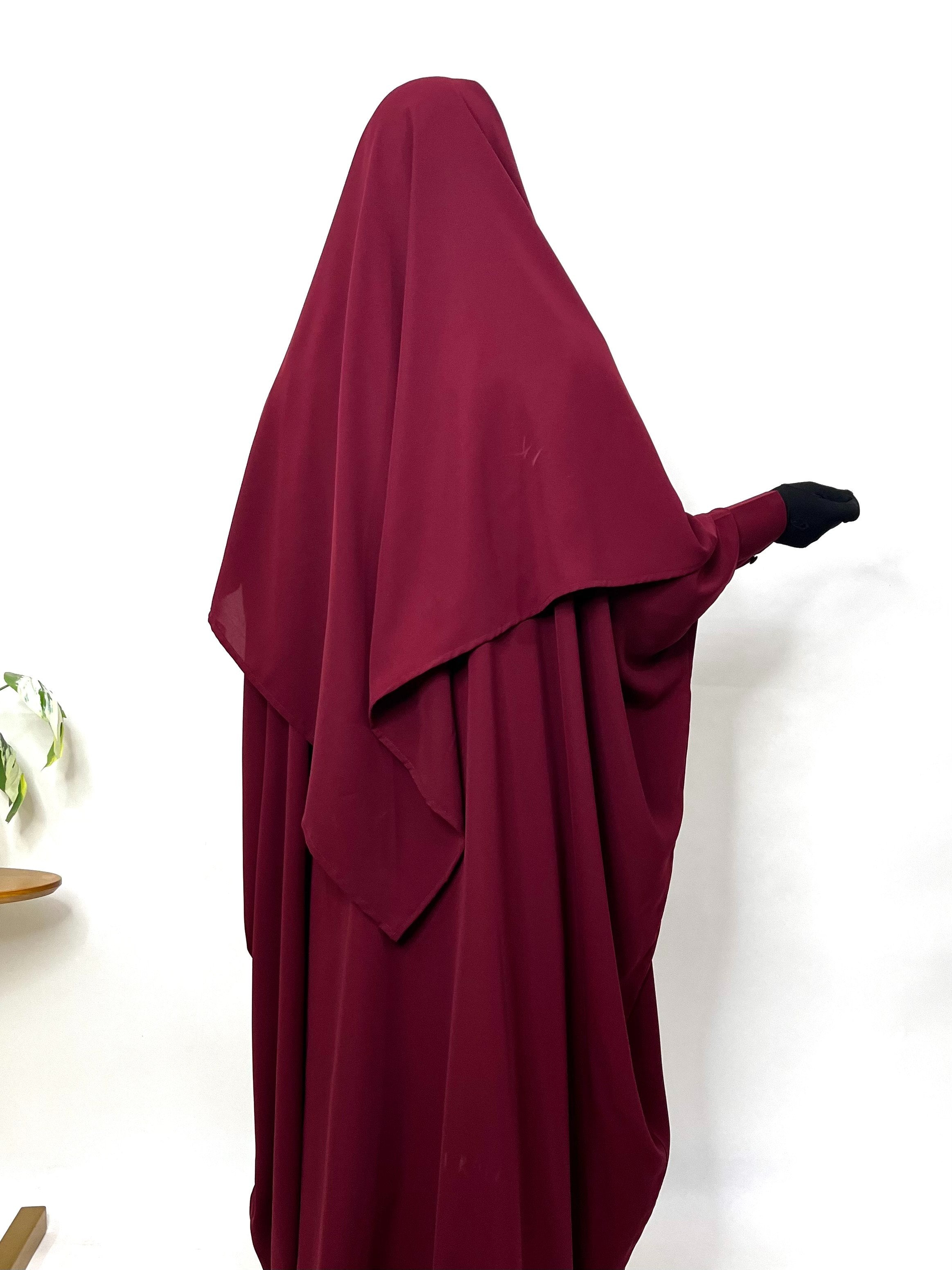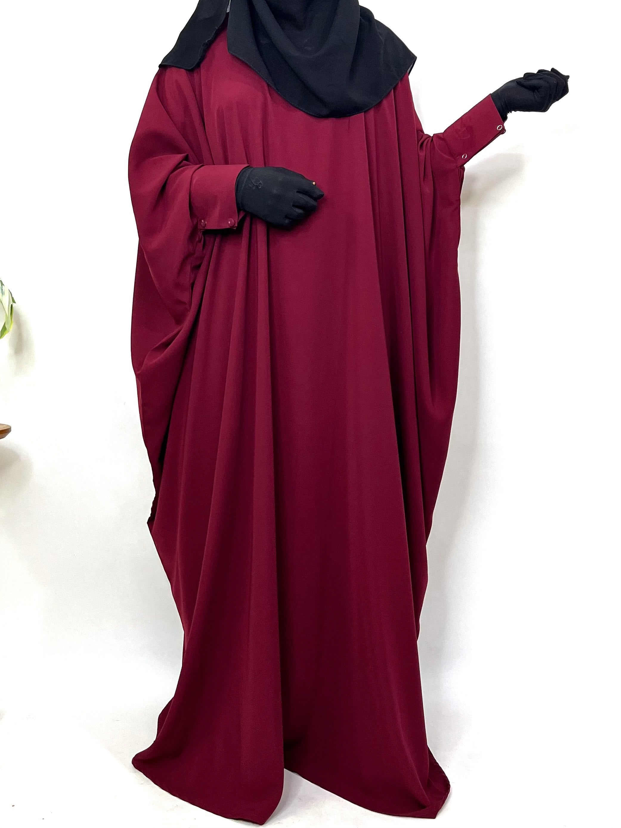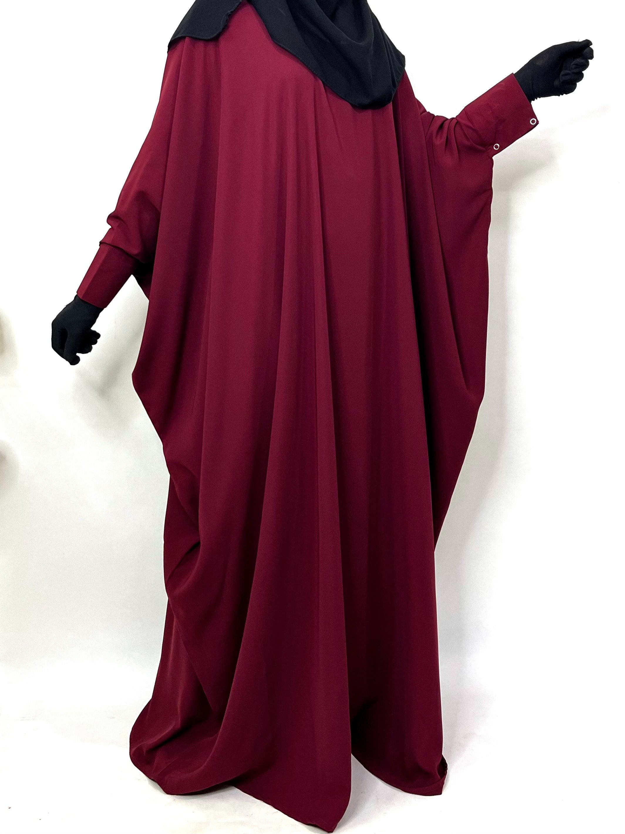 Maroon Kaftan abaya with one layer maroon diamond khimar is free size abaya that is perfect for full coverage. When paired with the matching khimar it gives a whole different look , soothing to the eyes it’s a must have for this season.