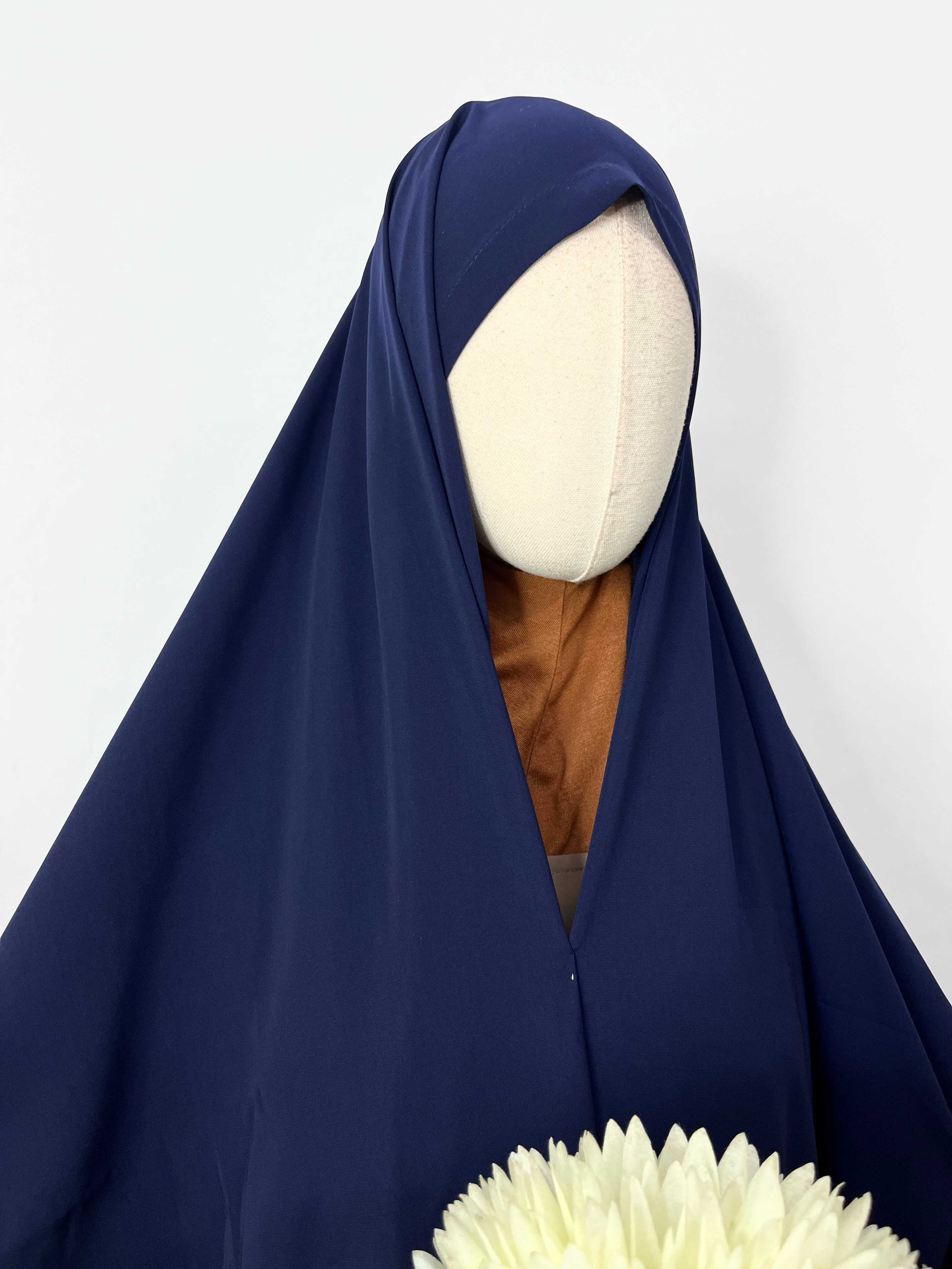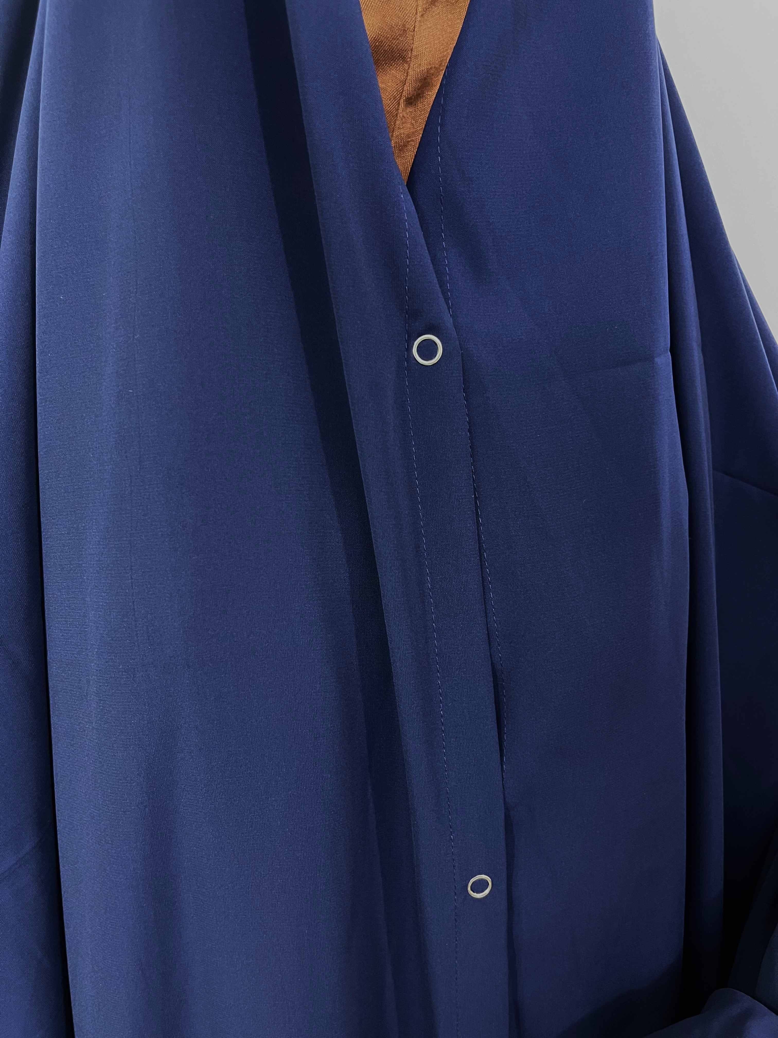 Effortlessly elevate your style with our Navy Blue Irani Chadar. Made with nida matt fabric, it provides full coverage while being easy to wear. With sleeves and a quick one-minute preparation time, you'll be ready to look your best in no time.