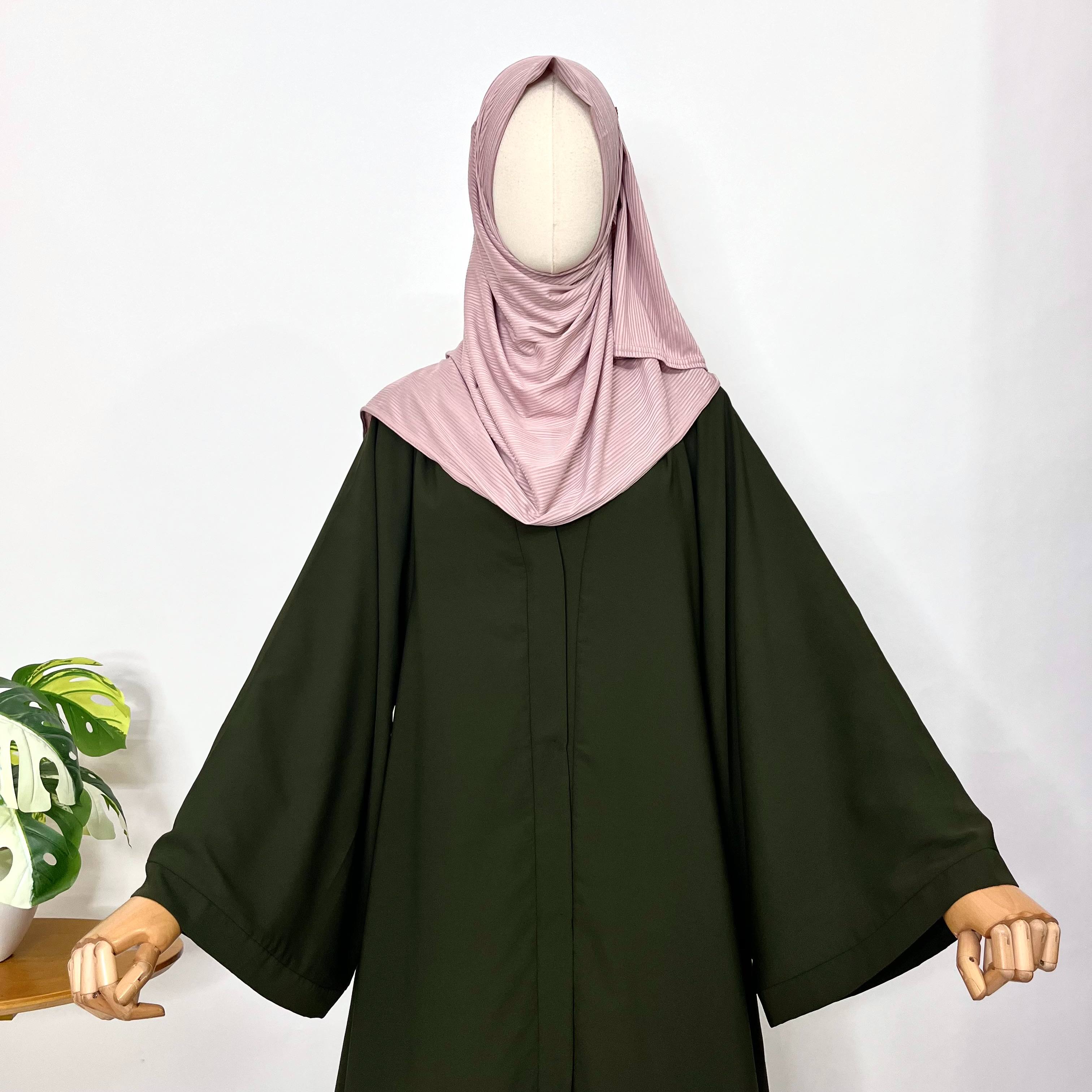 The Bisma Abaya features a graceful front-open design with an elegant A-line silhouette, offering both comfort and style. Its distinctive double sleeves and broad upper sleeves add a unique touch, ensuring ease of movement while maintaining modesty. Perfect for those seeking a blend of tradition and modernity in their wardrobe.