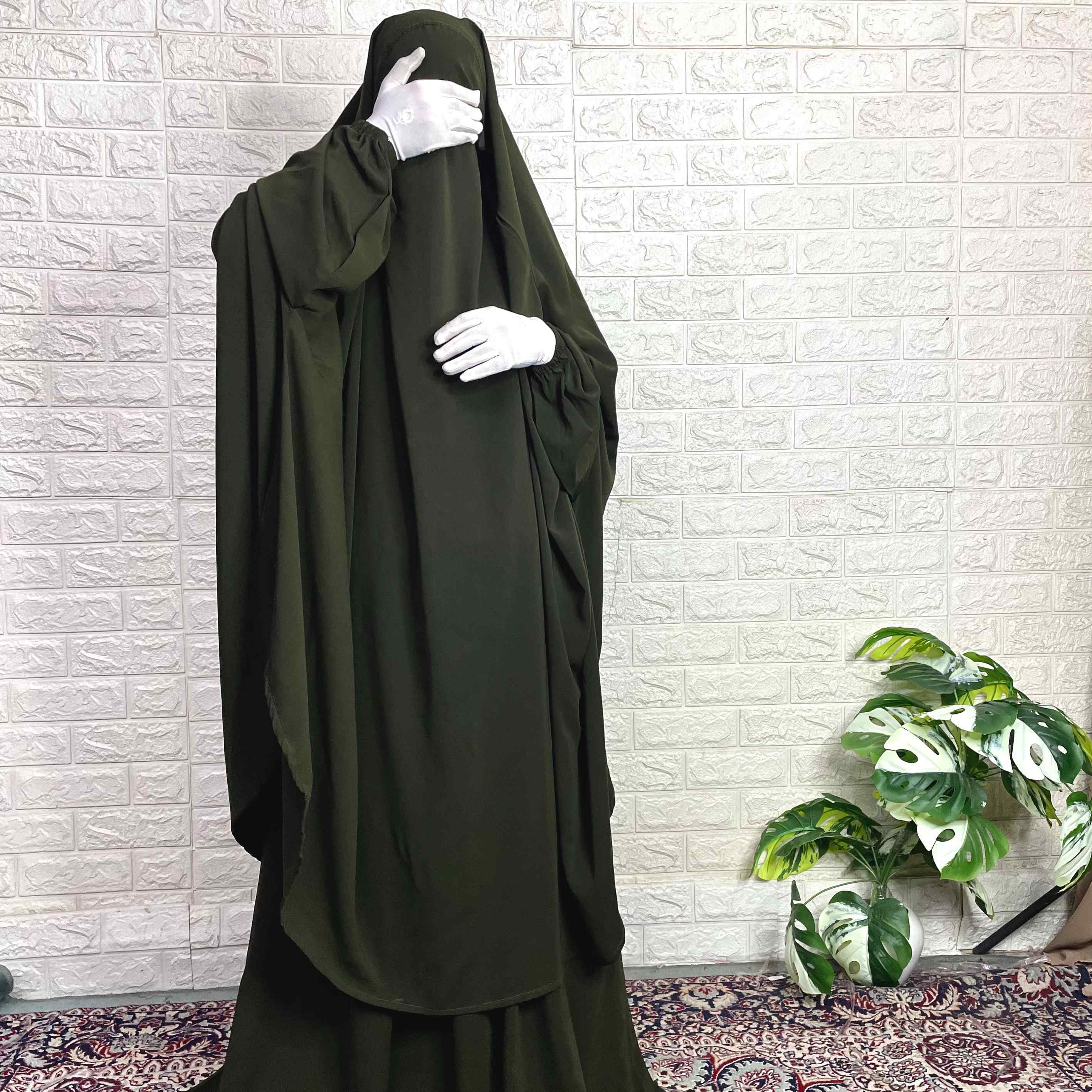 Stay stylish and modest with our Two Pc Jilbab. This two piece set includes a skirt and a jilbab, providing full coverage while keeping you comfortable with elastic sleeves. Perfect for any occasion, this jilbab allows you to stay true to your faith and fashion.