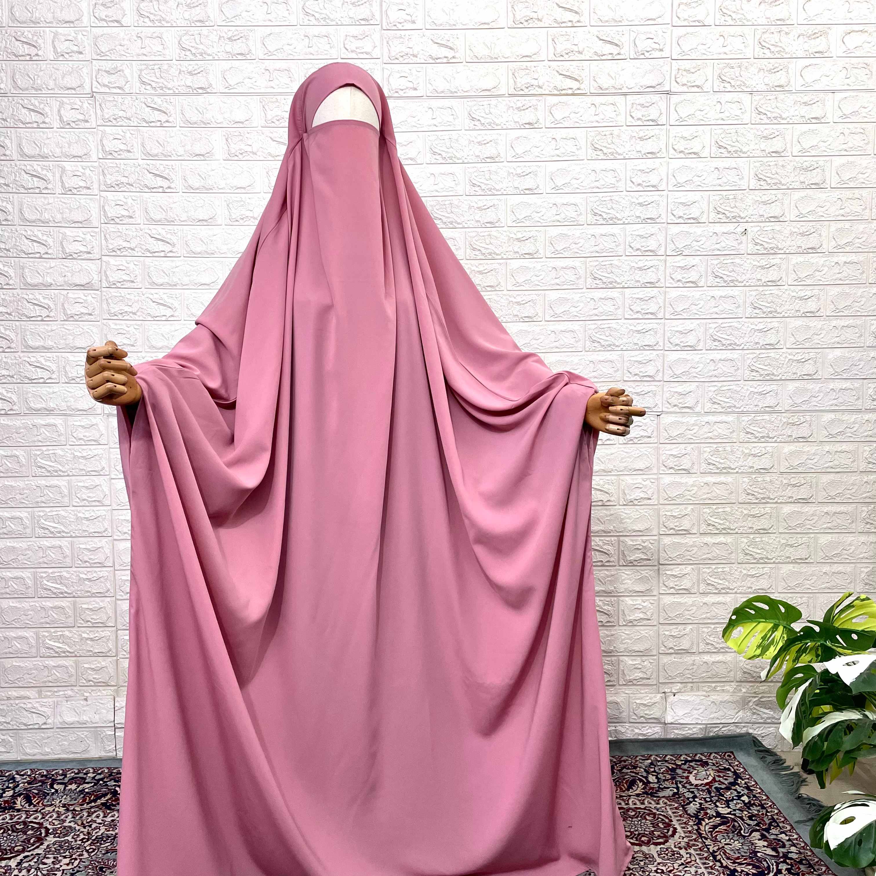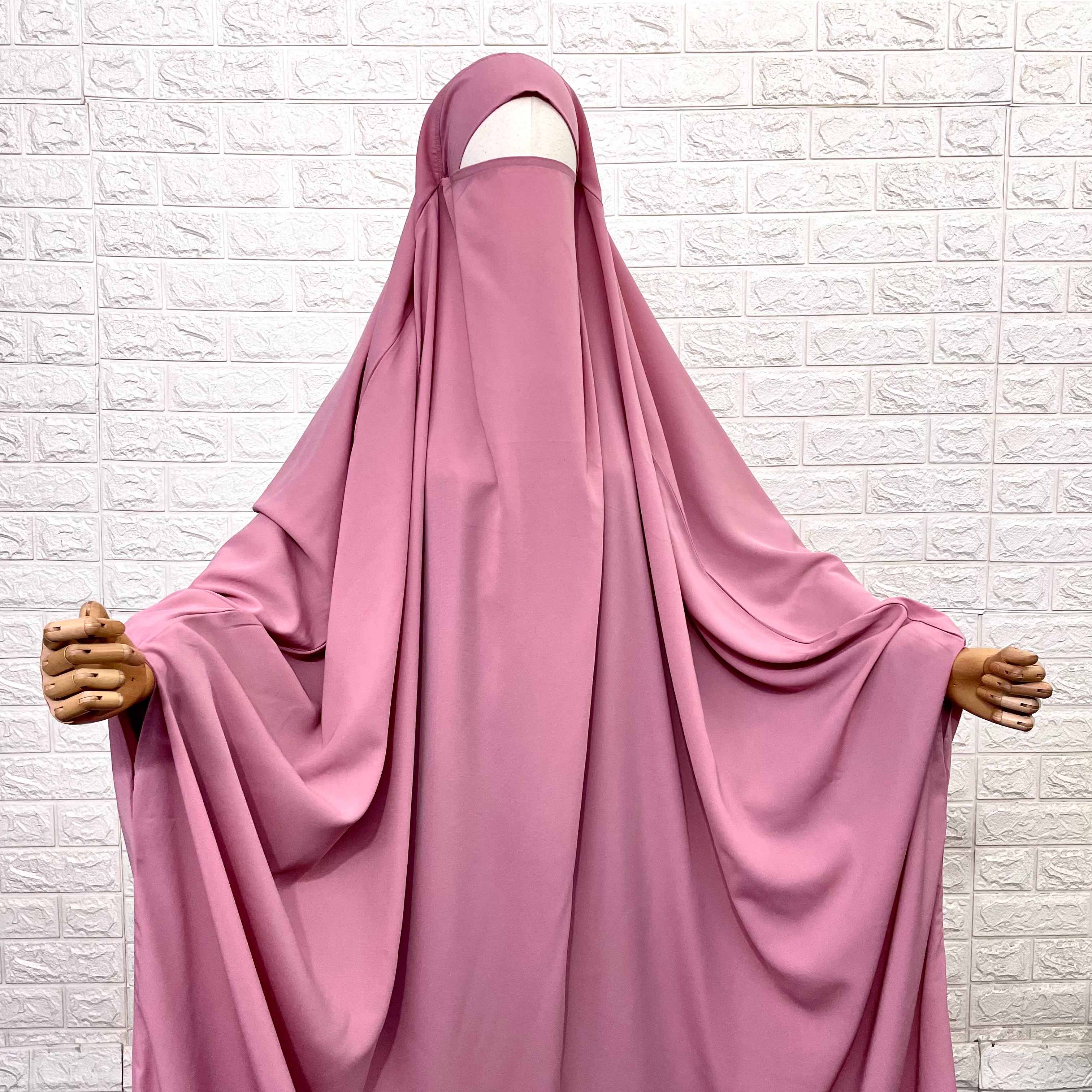 Introducing our Pastel Pink Madina Jilbab, the perfect combination of fashion and comfort. Made with lightweight fabric and a broad free size, this jilbab offers a trendy barbie look while allowing for easy movement and breathability. Experience the best of both worlds with our Madina Jilbab.