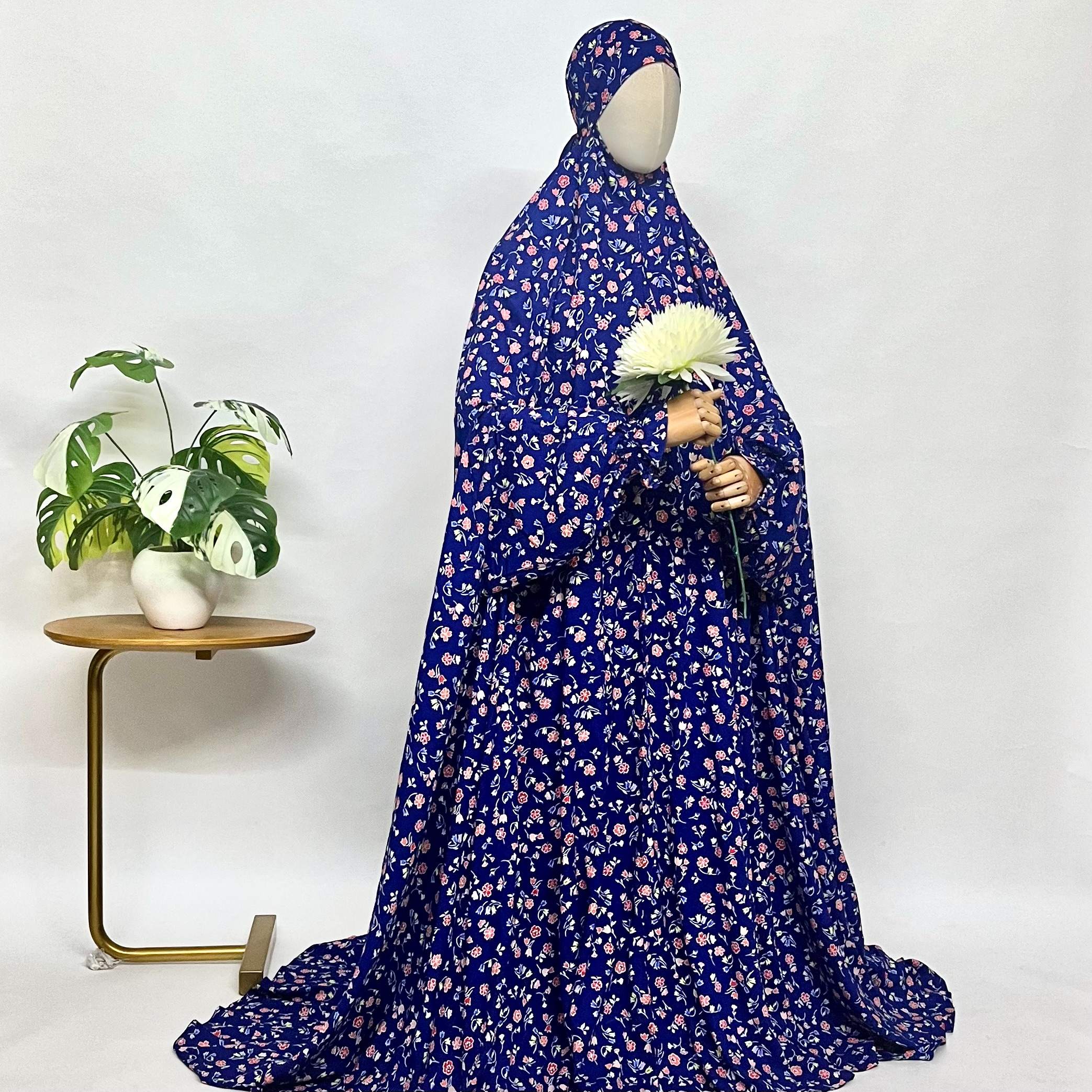 This Full Length Prayer Khimar is designed to provide full coverage with a floor-touching length that keeps your feet comfortably covered, adapting to your height. Its very flared silhouette adds a graceful, princess-like charm, making it both modest and elegant. The free size ensures a comfortable fit for various body types, supporting your needs during prayer with ease and style.