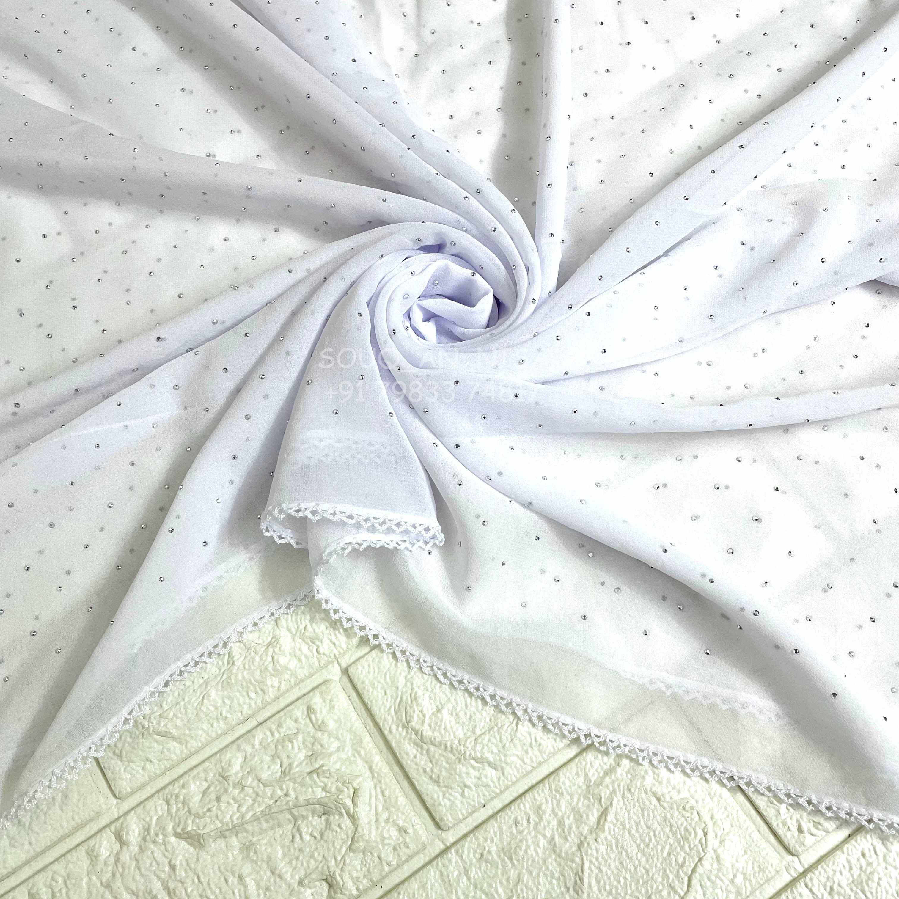 Add a touch of elegance to your hijab collection with our Rhinestone Hijab. Made with high-quality georgette fabric, these evergreen hijabs will keep you looking stylish and on-trend. Elevate any outfit with the added sparkle of rhinestones. The perfect choice for any occasion.